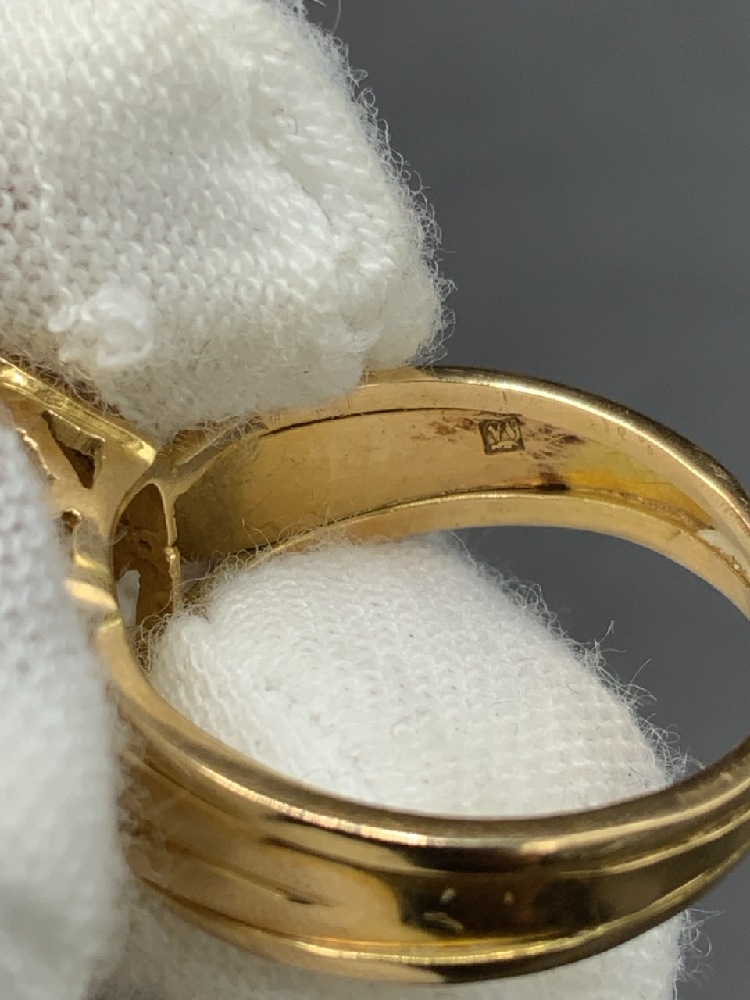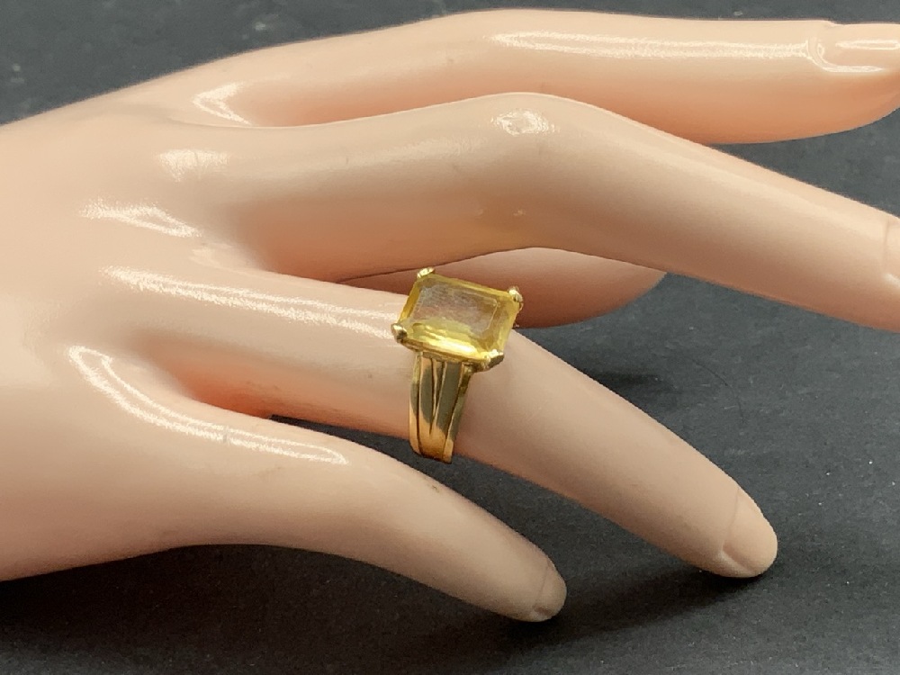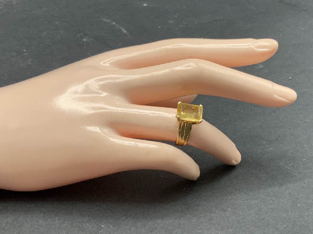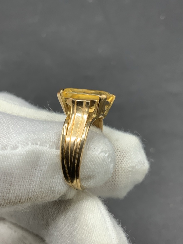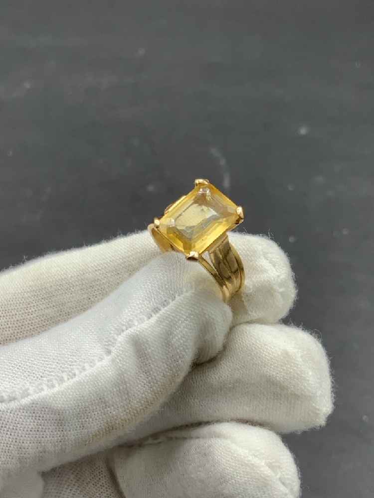 18K Yellow Gold Citrine Emerald Cut Ring. Size 6.