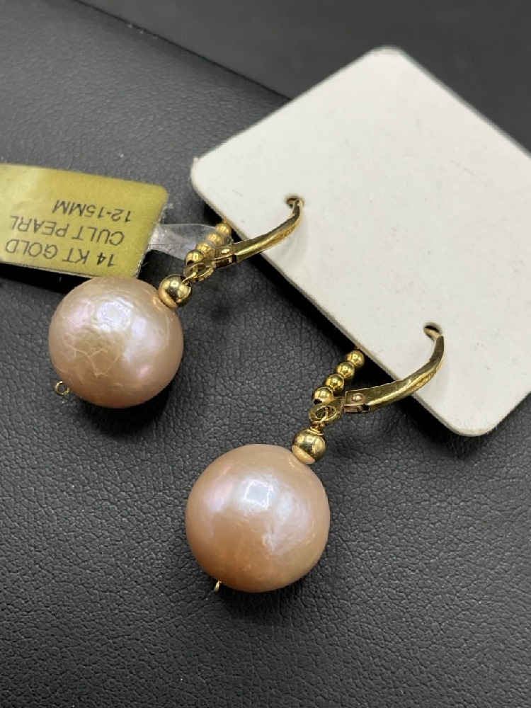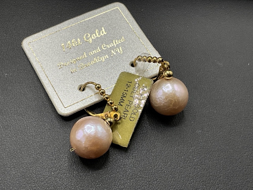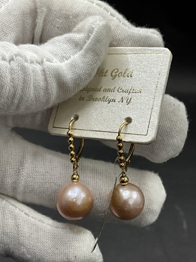 14K Cultured Pearl Earrings Made in Brooklyn NY.