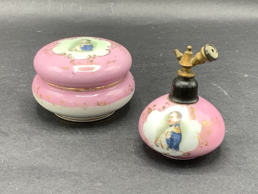 French Napleonic Porcelain Dresser Box and Atomizer.