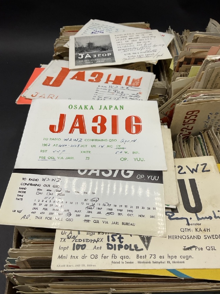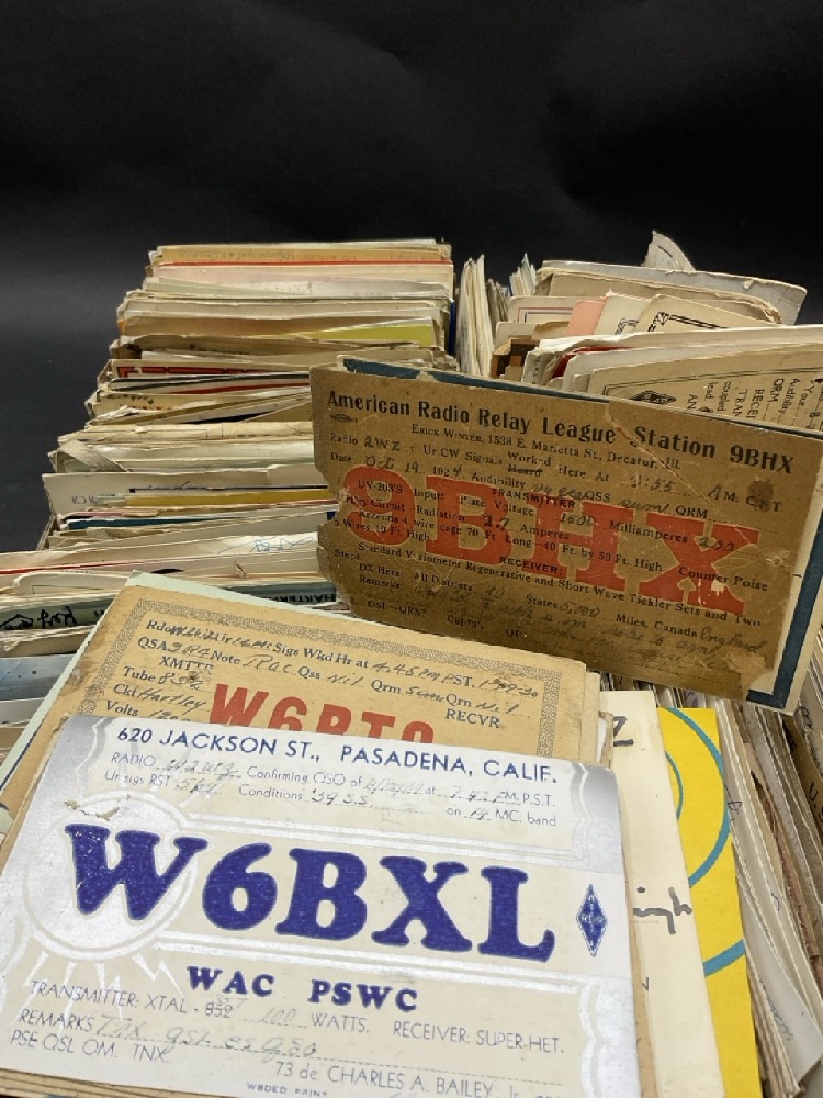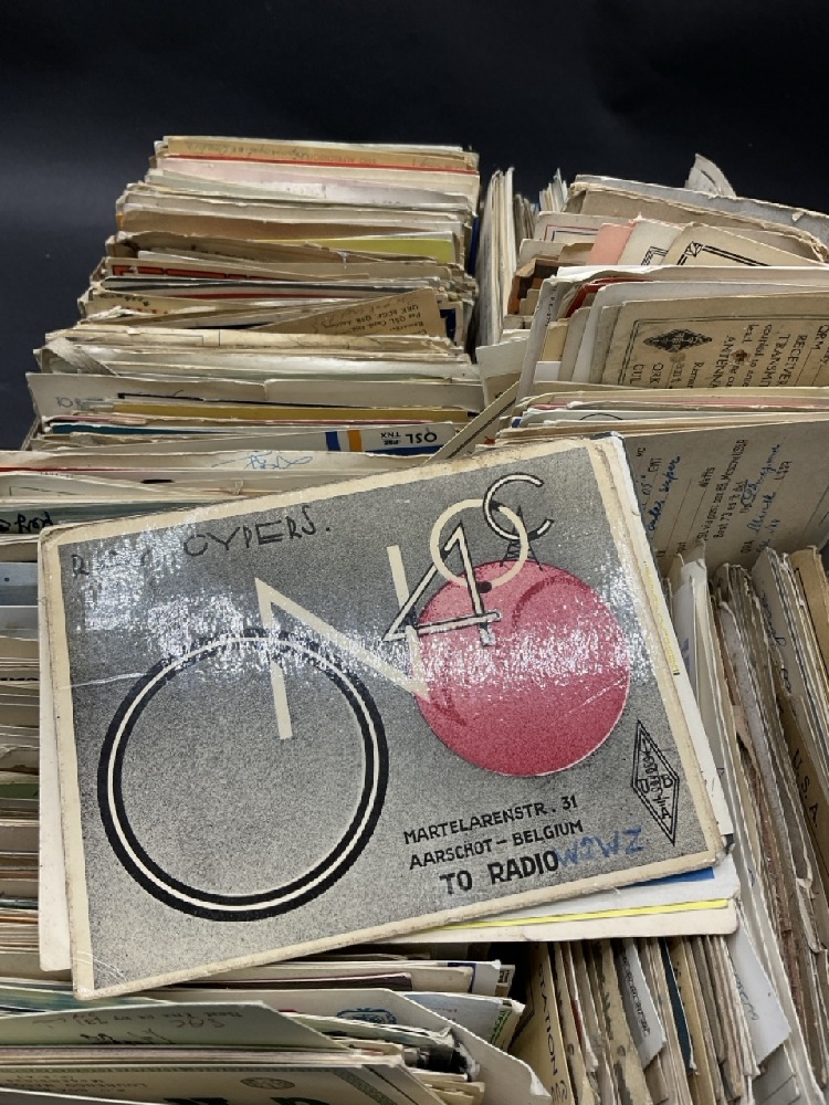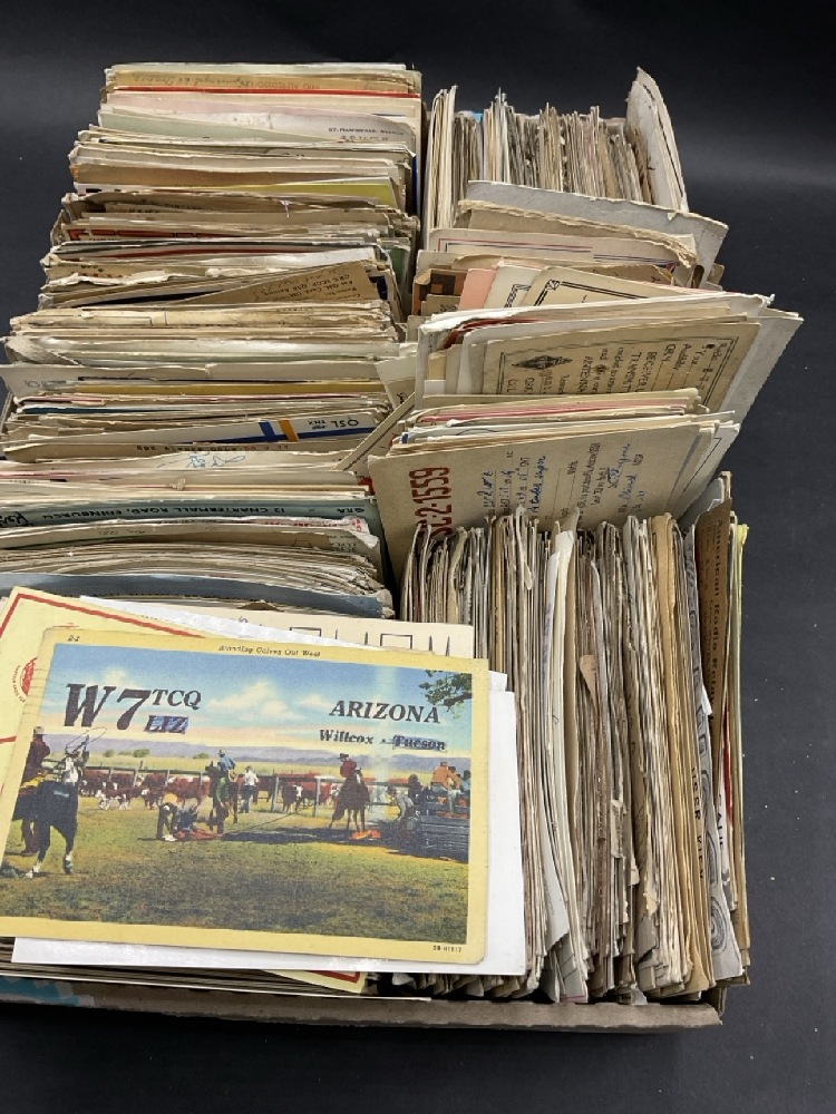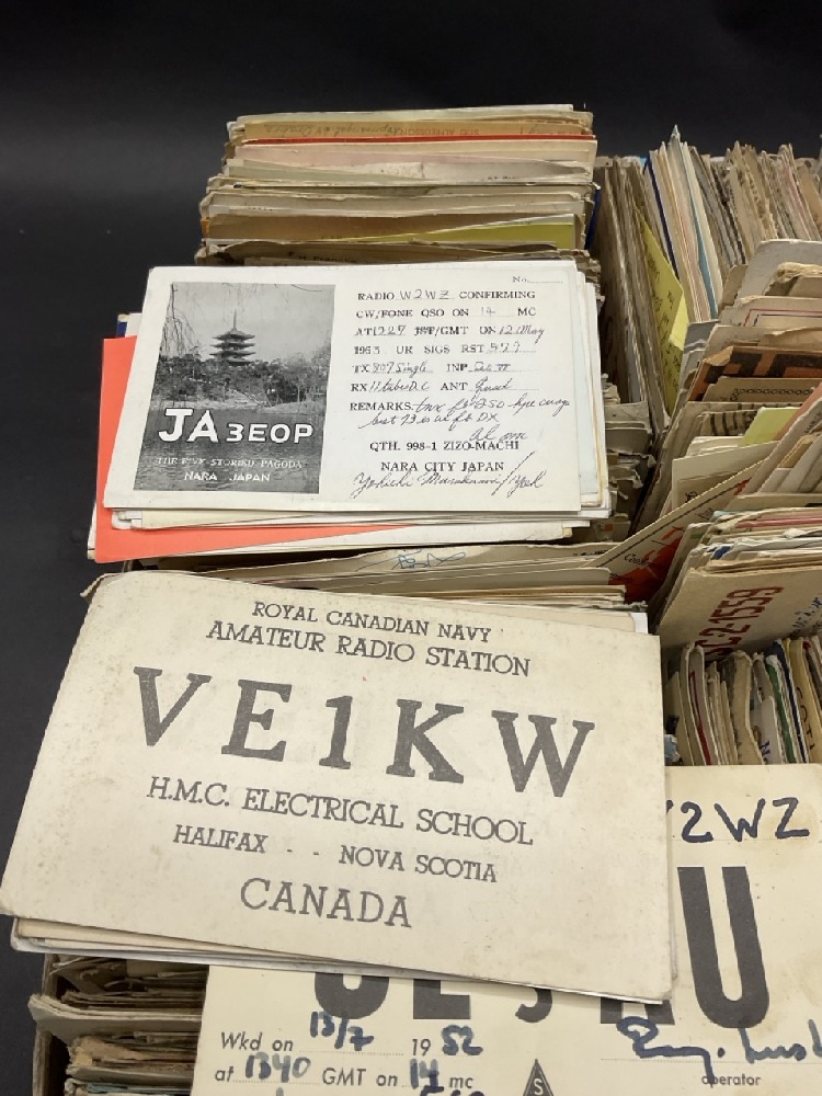 Over 200+ Hamm Radio Call Cards- 1950's. Some cards stuck together or soiled. Please see photograph preview. Cards from all over the world.