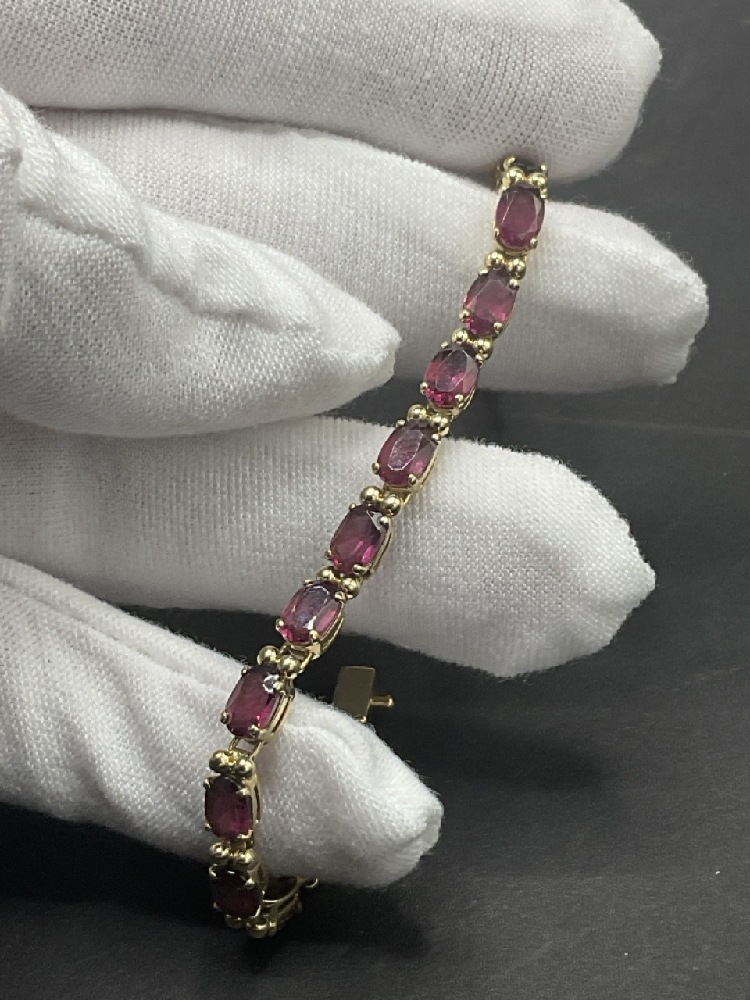 14K Mexican Yellow Gold Amethyst Bracelet. Twenty amethyst gemstones.