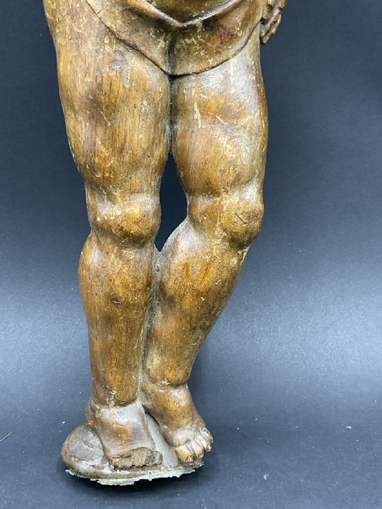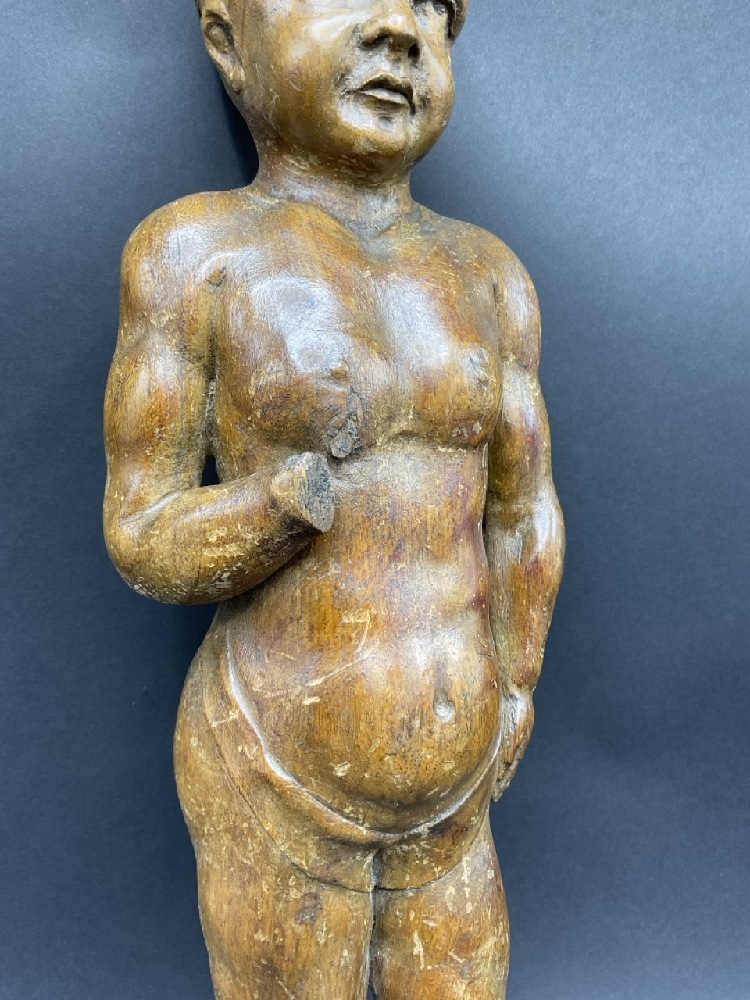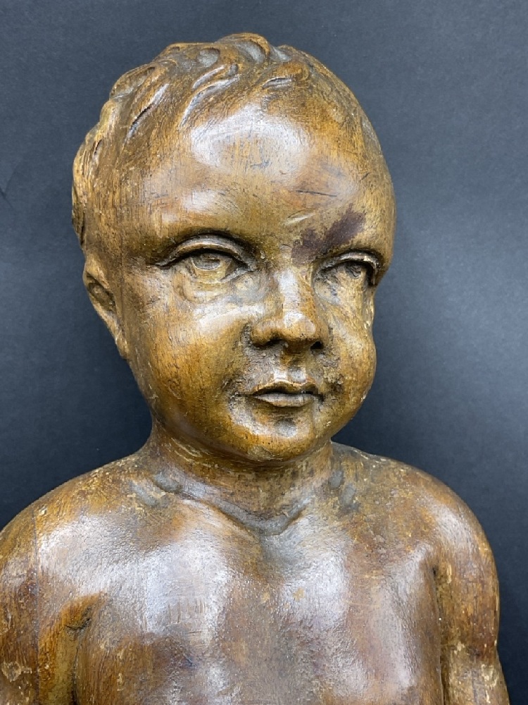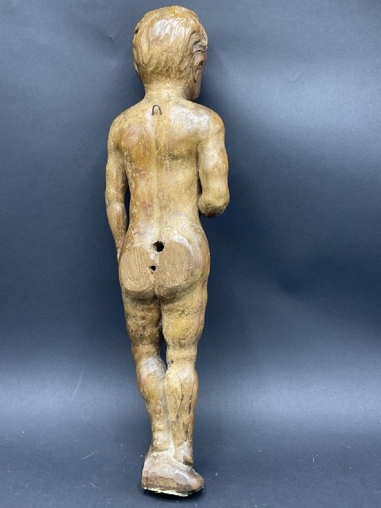 18th/19th c. Italian Architectural Carved Wood Full Bodied Figure of a Boy.