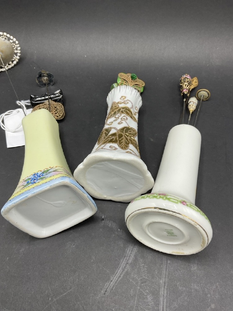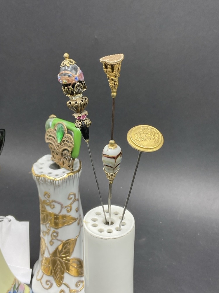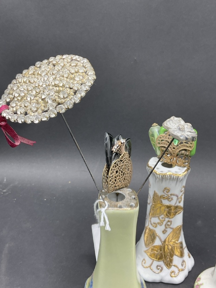 Compiled Hat Pins and Porcelain Holders. As seen in photograph preview.