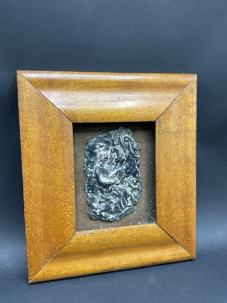 Sterling Silver Mounted Plaque of Greek God, Framed.