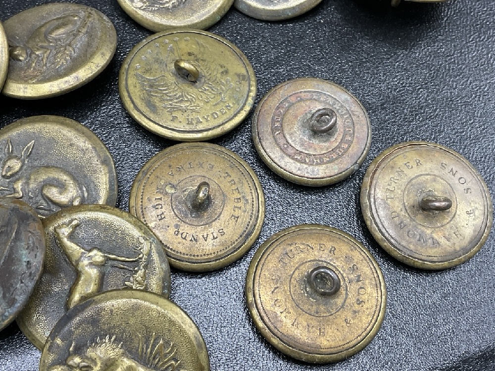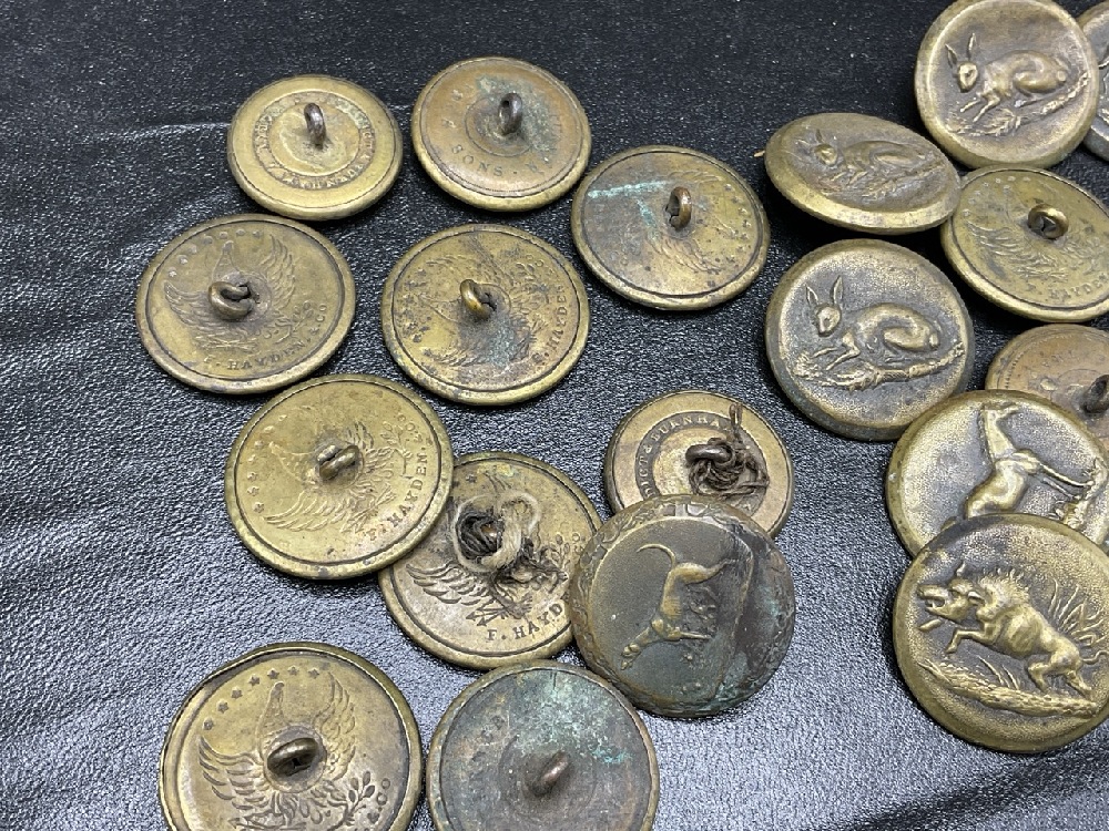 23 Antique American Brass Buttons F. Hayden & Co. Hammond Turner & Sons