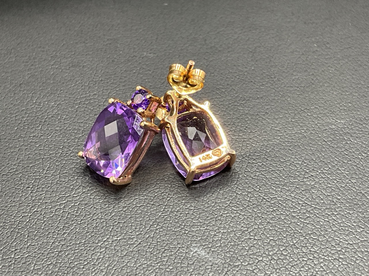 14K Yellow Gold Amethyst Gemstone Earrings and Pin.