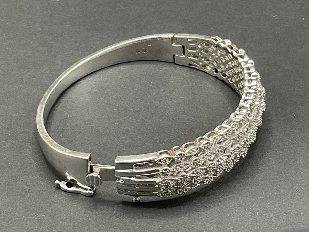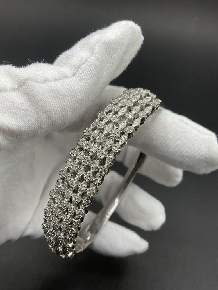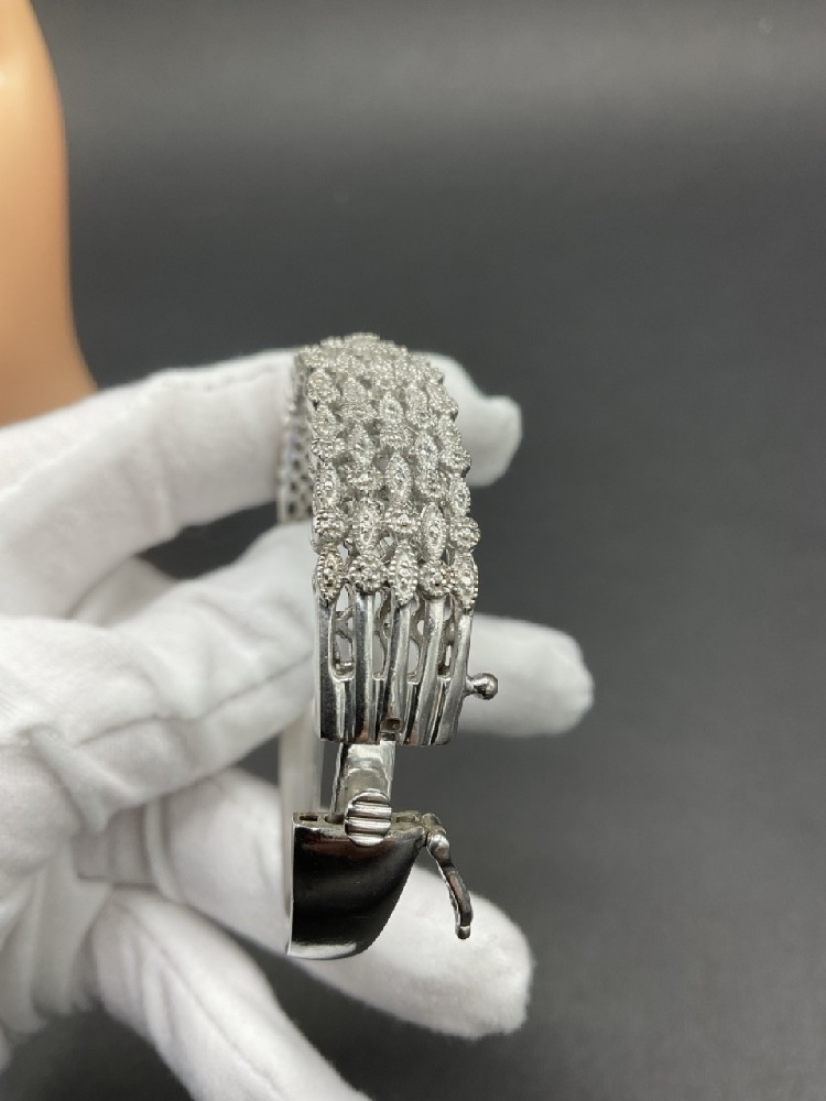 105 small diamonds set in sterling silver. Signed "SB" sterling.