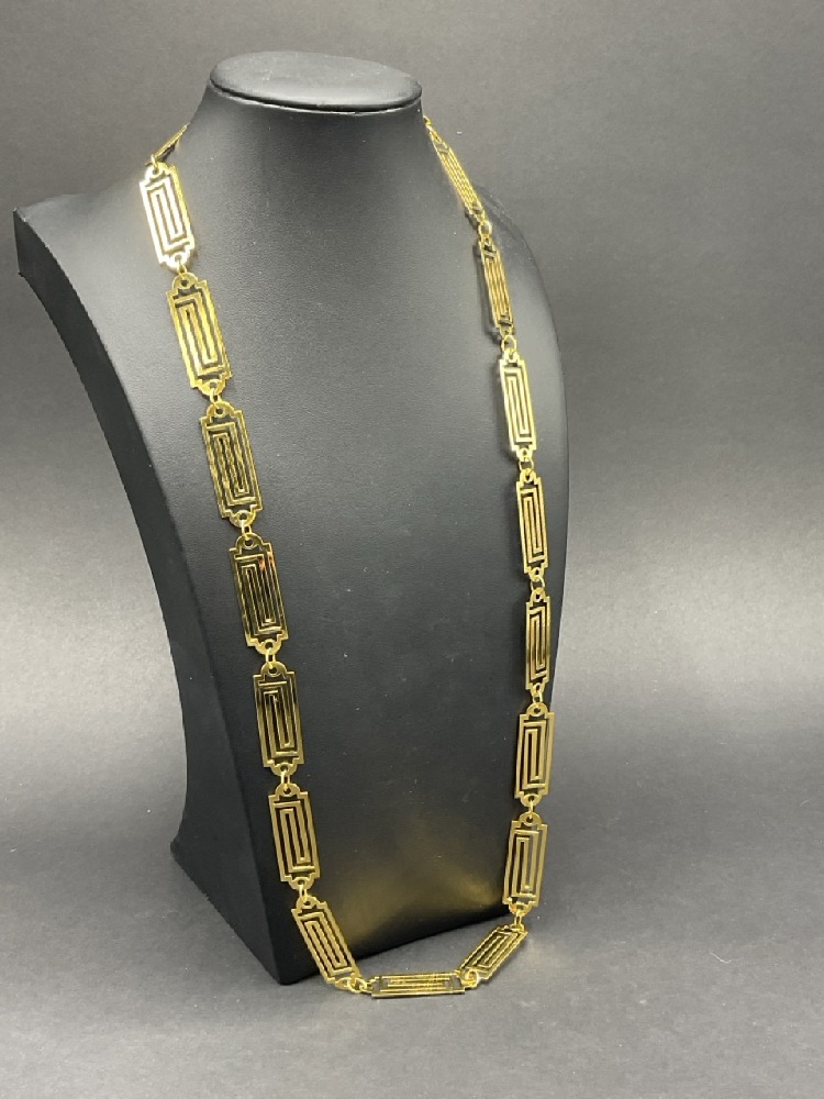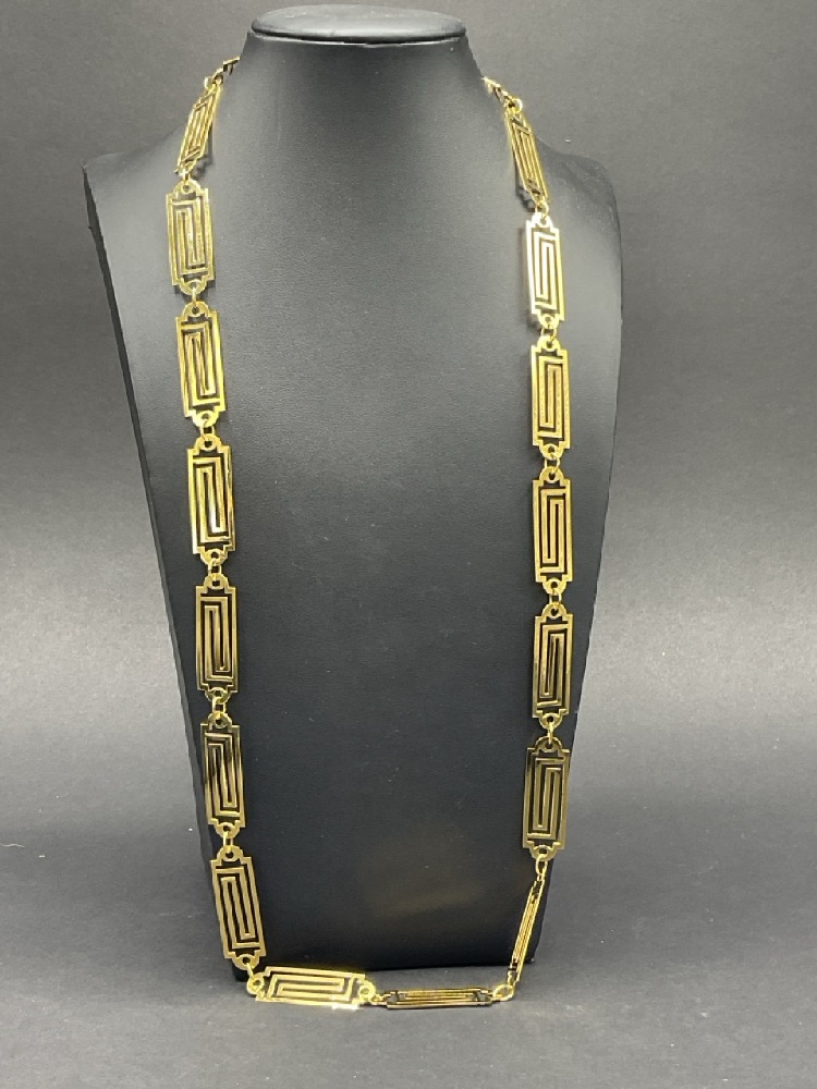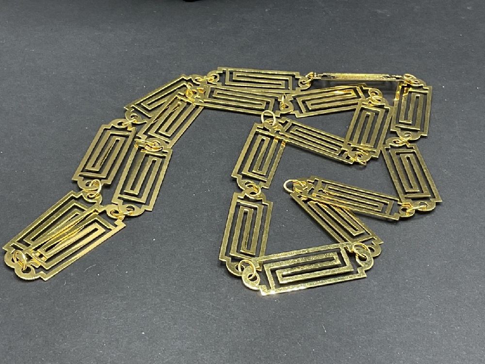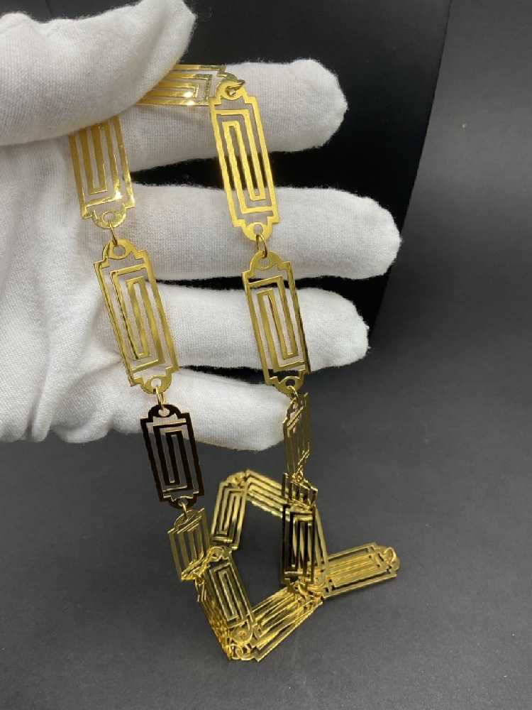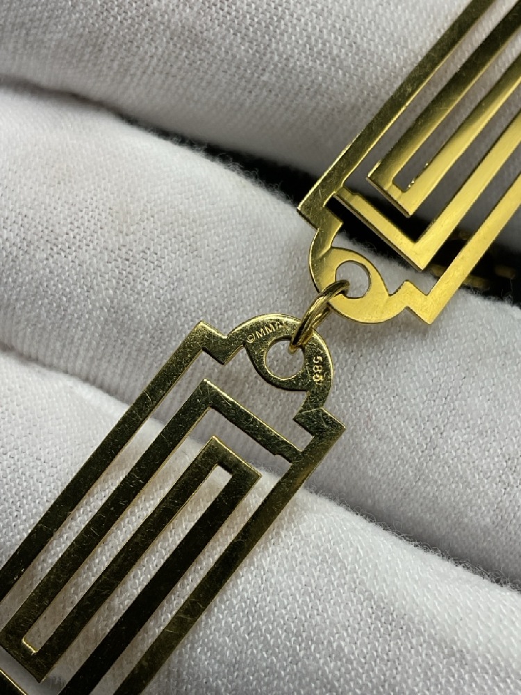 14K Yellow Gold MMA Open Maze Geometric Labyrinth Necklace.