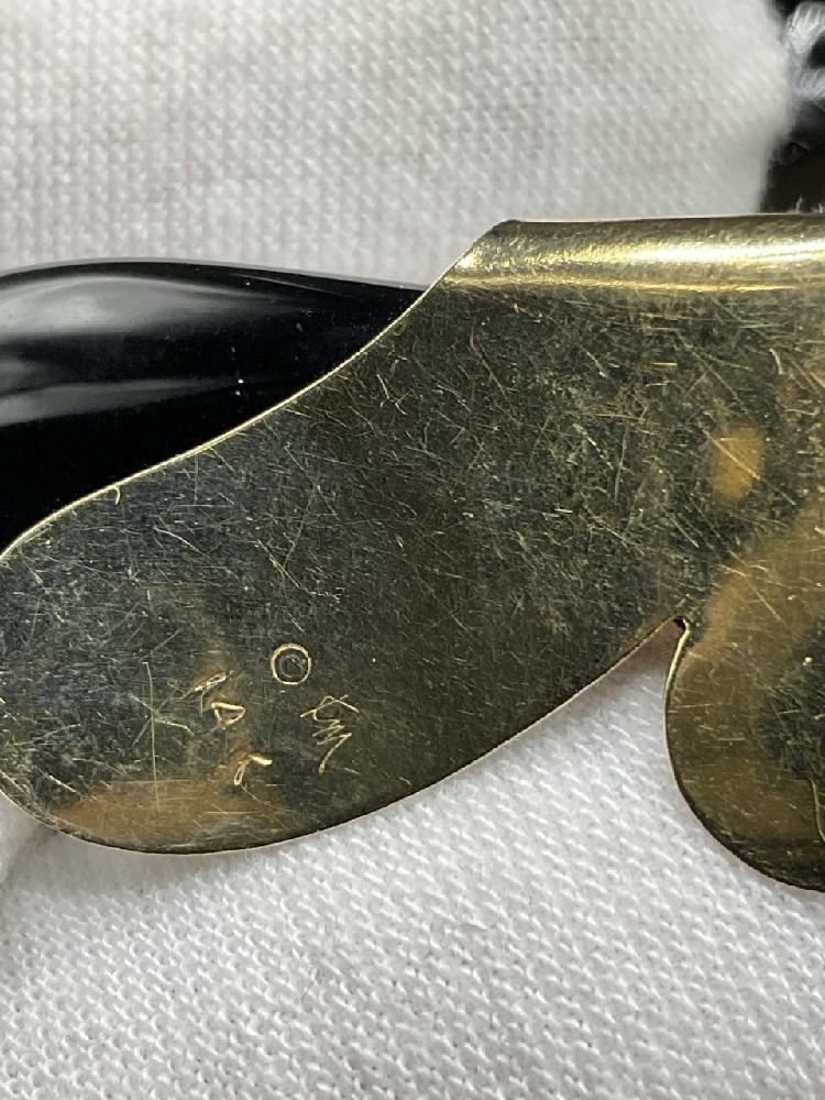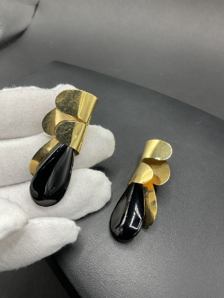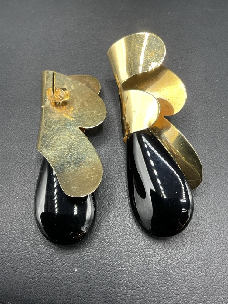 14K Yellow Gold Vintage Artisan Signed Onyx Earrings.