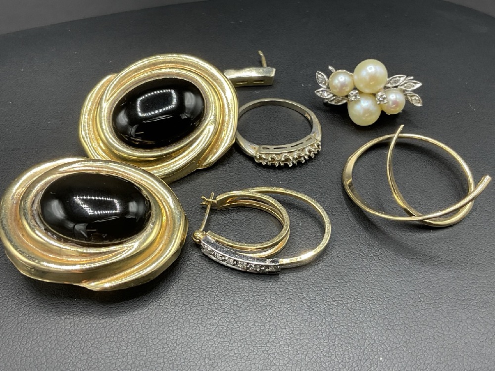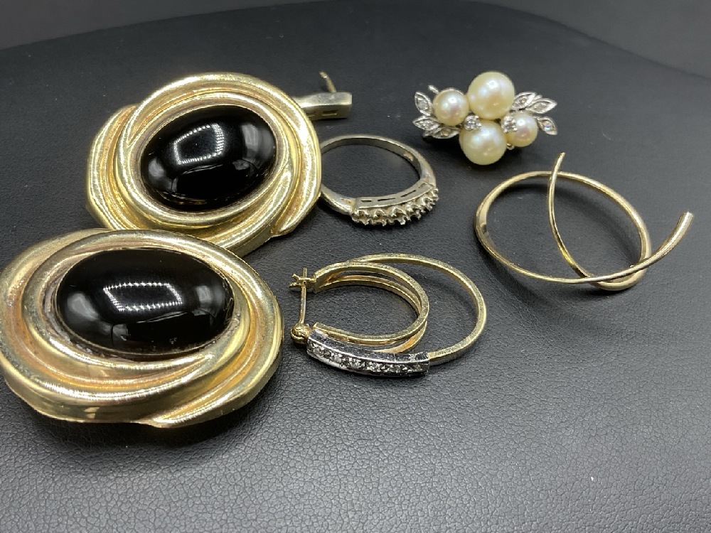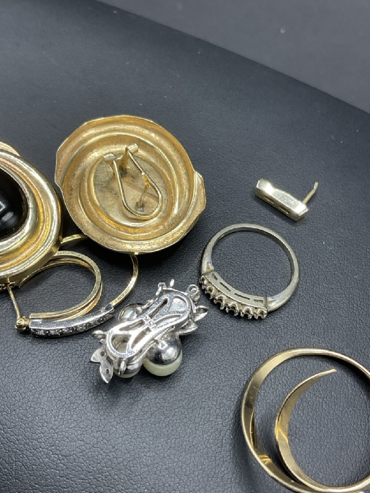 Estate compiled gold jewelry. 14K yellow gold earrings, dented and single earrings etc. As seen in photograph preview.