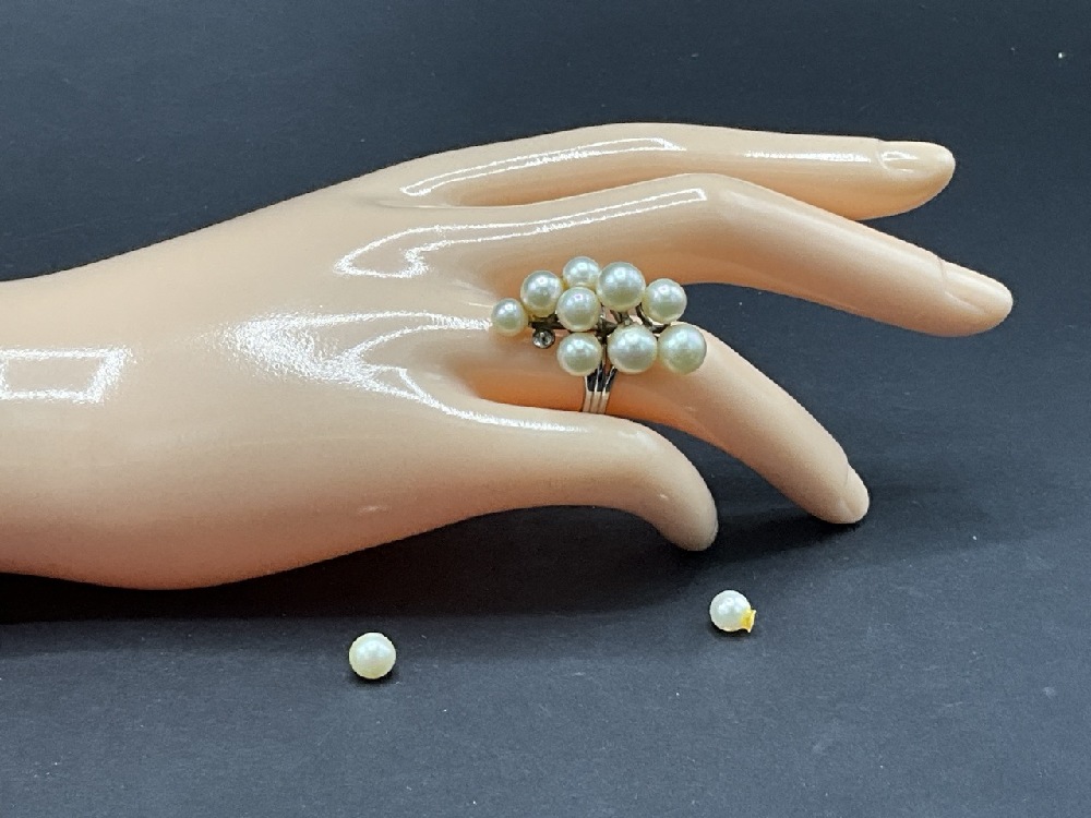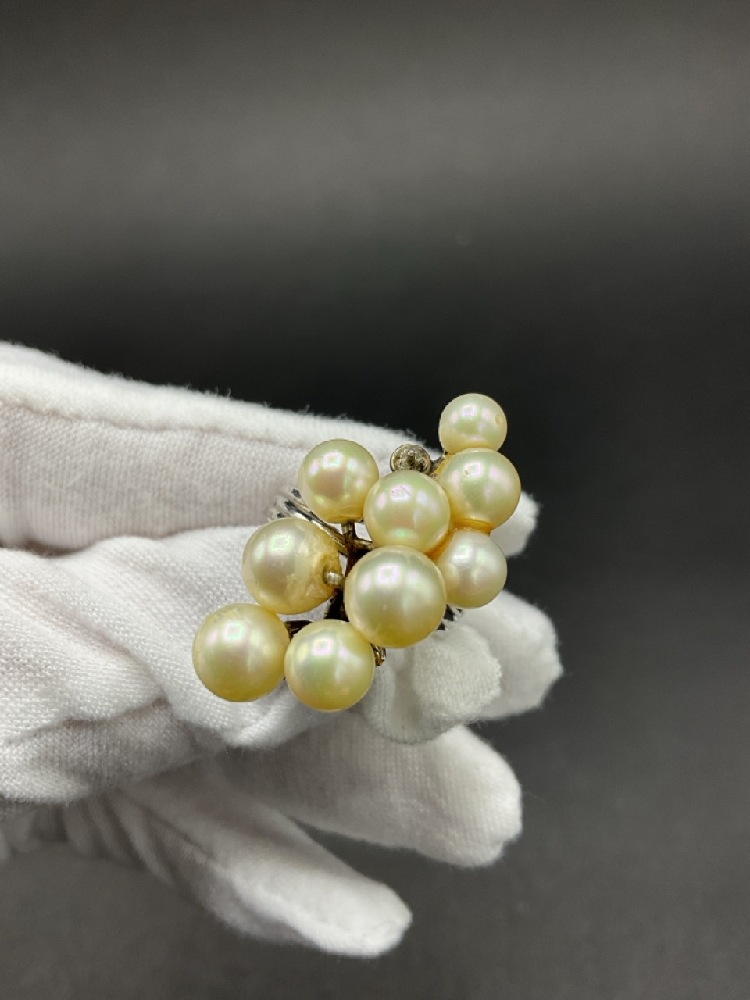 14K White Gold Pearl Cluster Ring. Two stones detached. Repair needed.