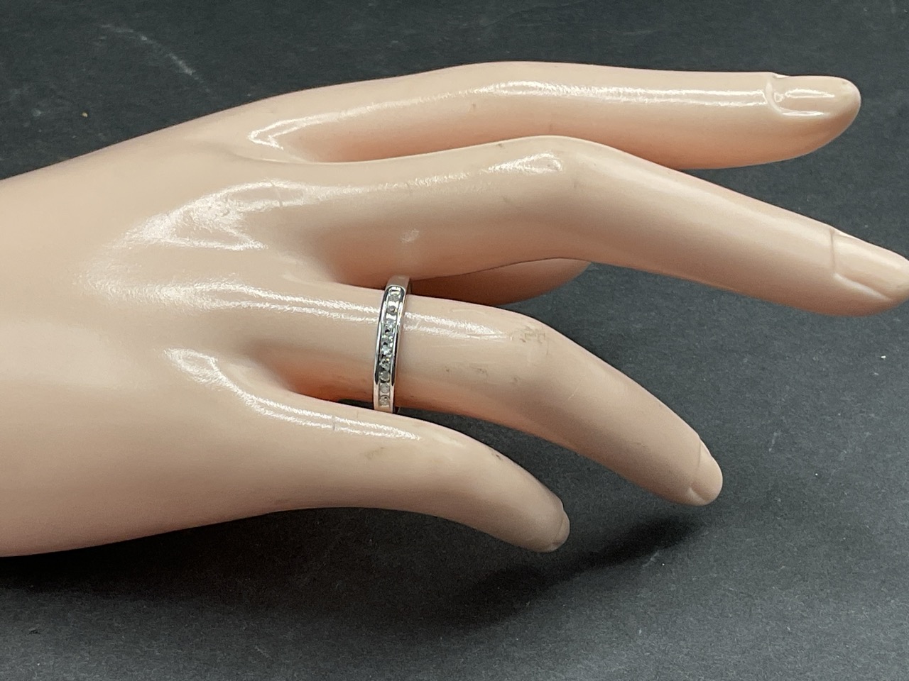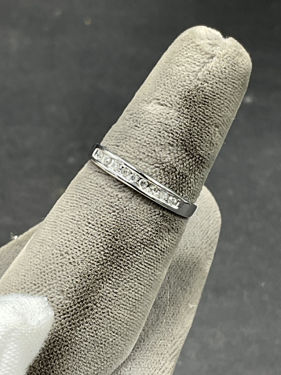 10k White Gold 9 Diamond Band Ring.