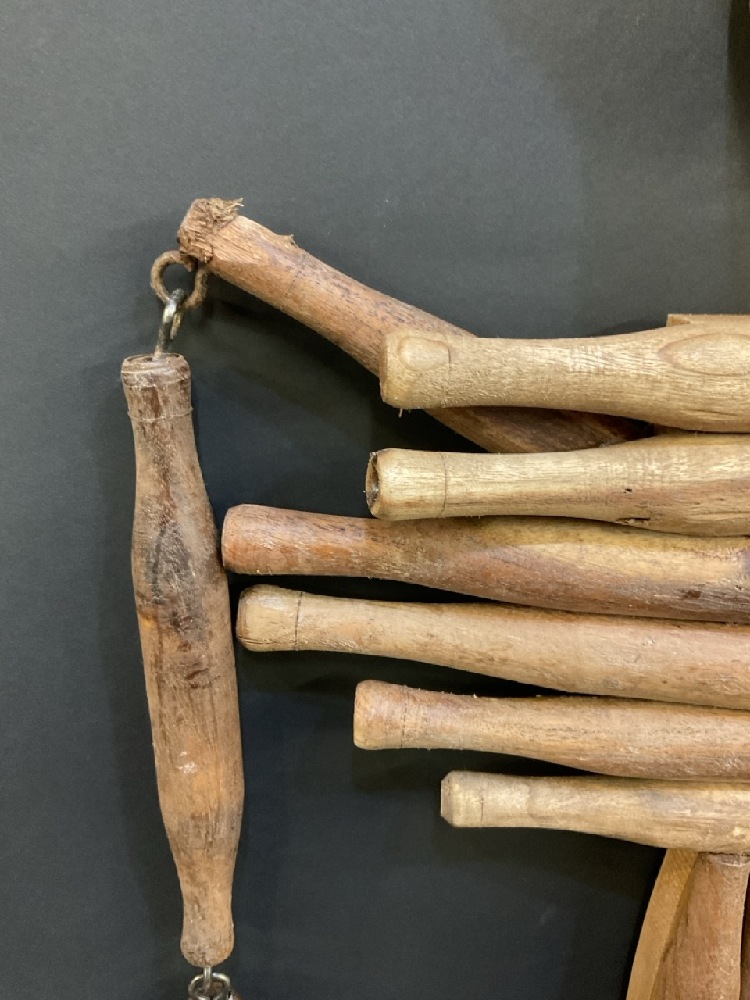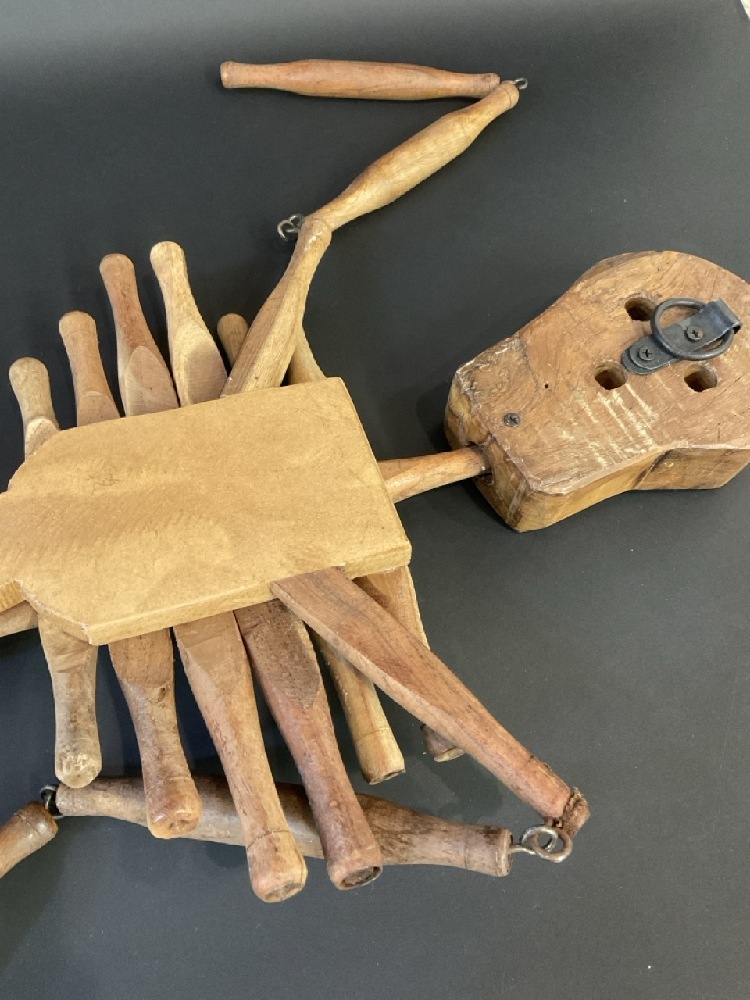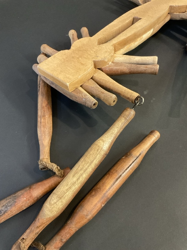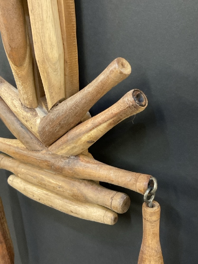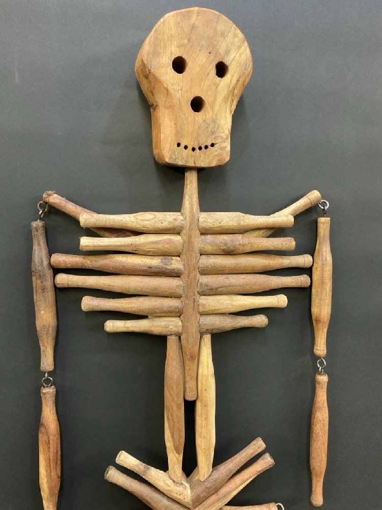 Vintage Folk Art Wood Skeleton Sculpture. All hand carved wood.