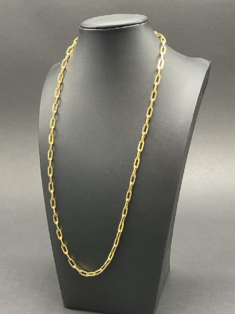 14K Yellow Gold Paper Clip Link Necklace.
