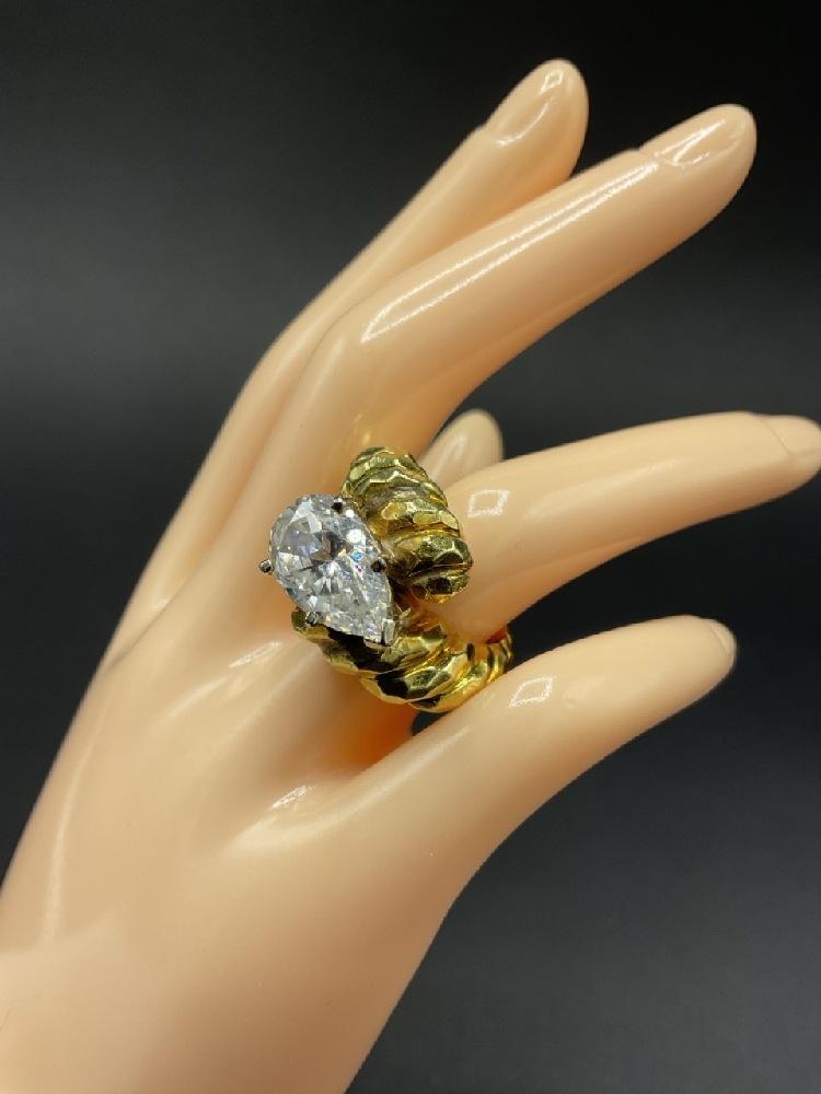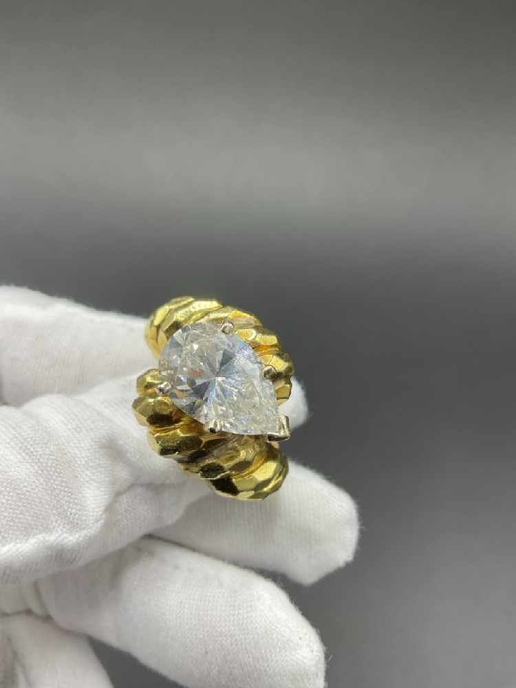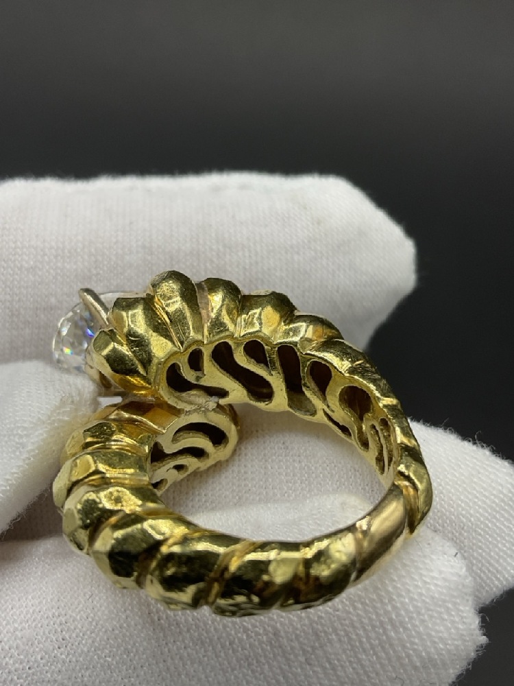 A vintage 18K Yellow Gold Chunky Lady's Ring with large CZ diamond stone.
