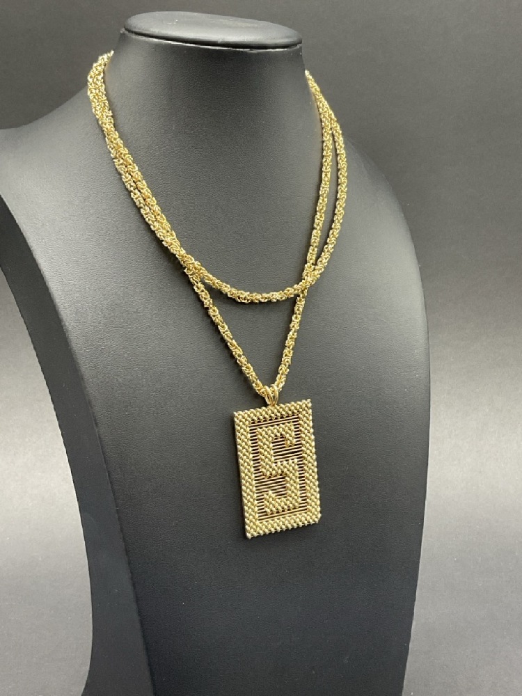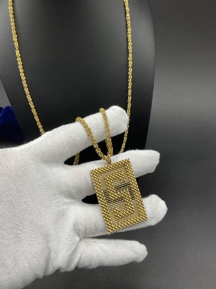 Large 14K Gold "S" Pendant with 28" Chain Necklace.