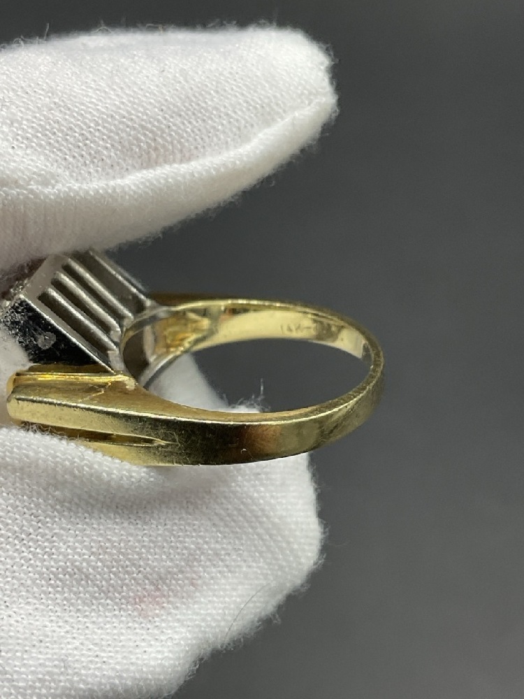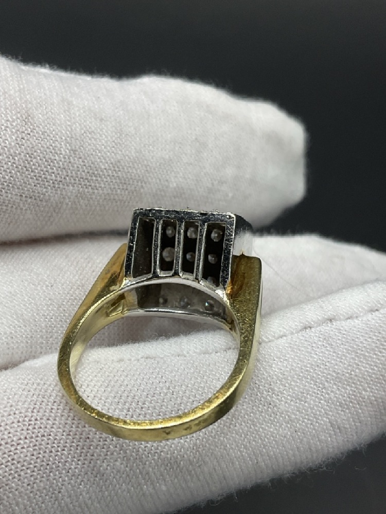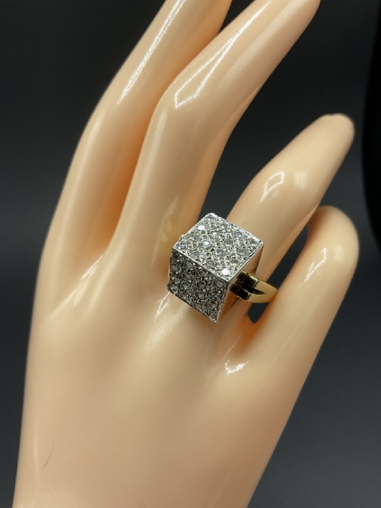 14K Yellow Gold Diamond "Dice" Ring. White gold die with 32 diamonds and yellow gold band.