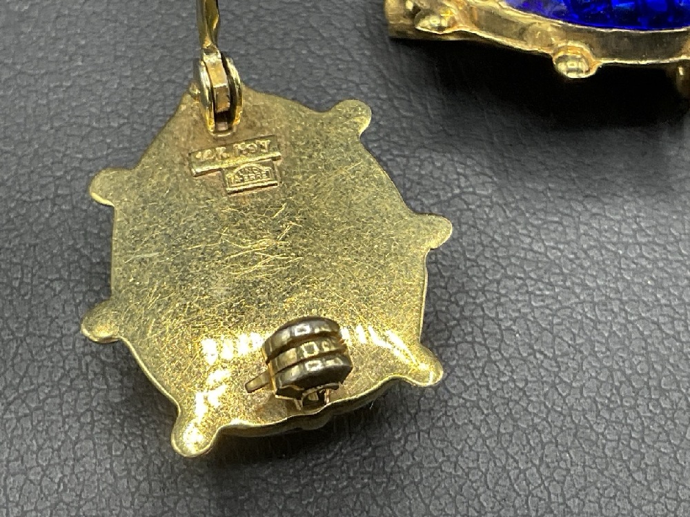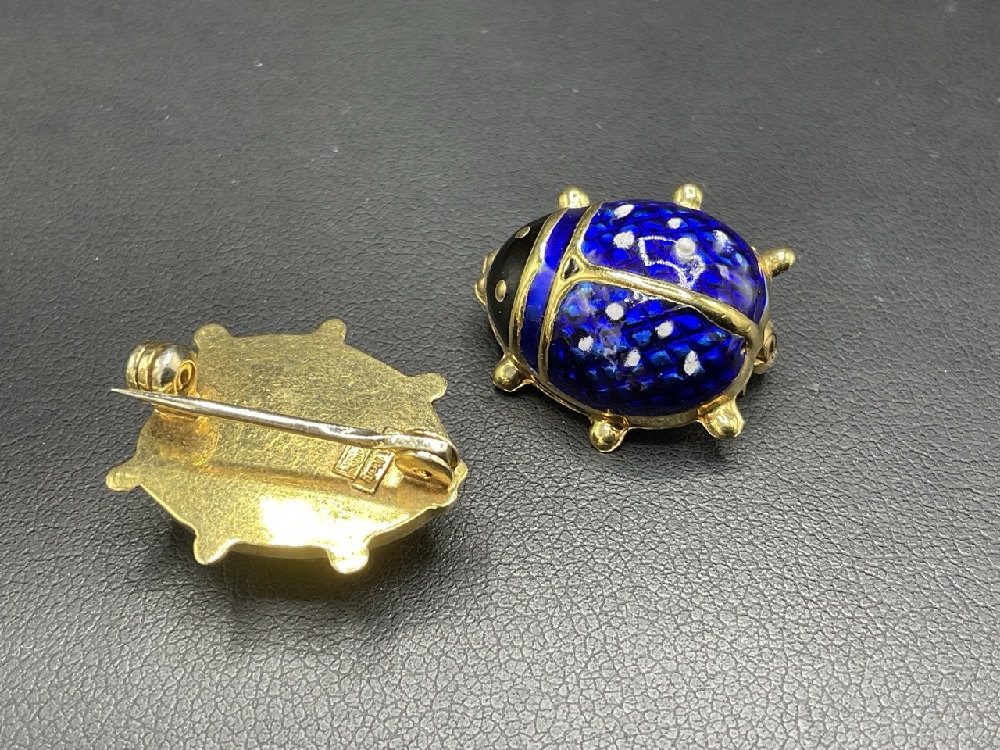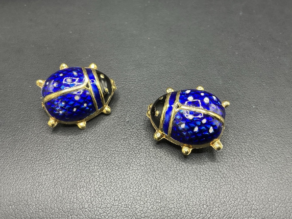 Uno A Erre Italian Blue Enameled Lady Bug Pins 14K Gold.