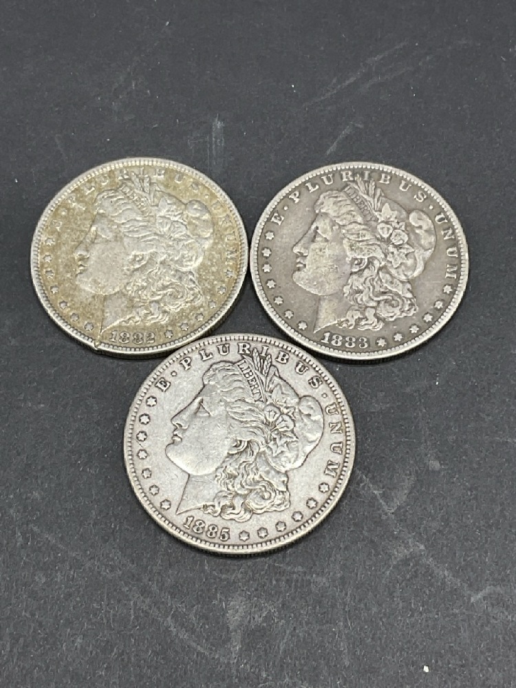 Lot of 3 Philadelphia Morgan U.S. Silver Dollars.