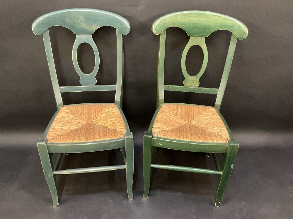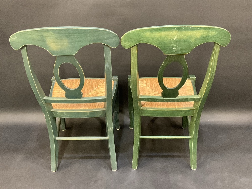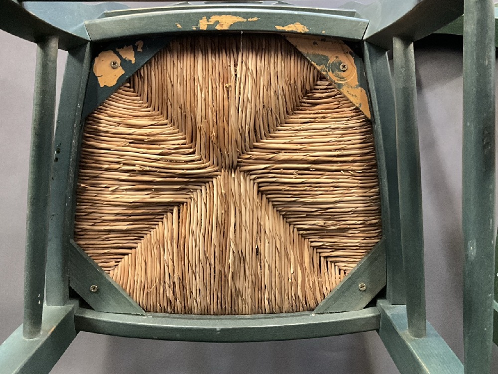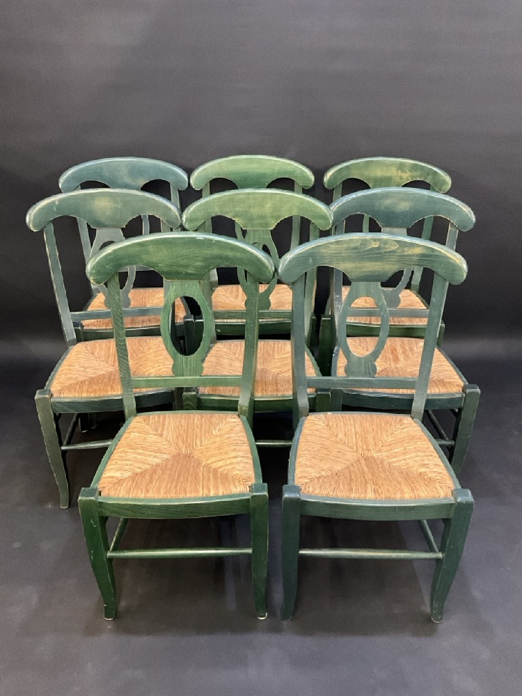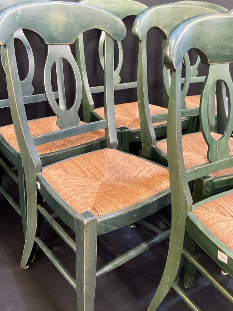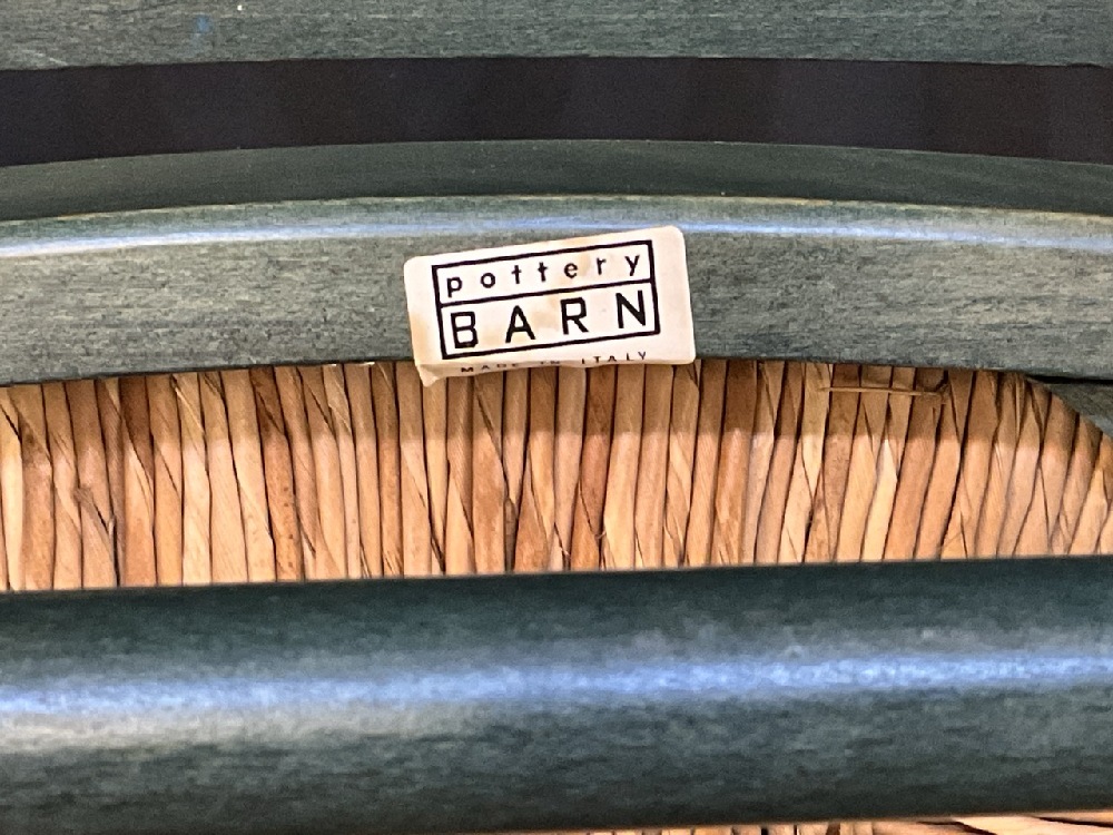 8 Vintage Pottery Barn Scroll Back Green Dining Chairs.