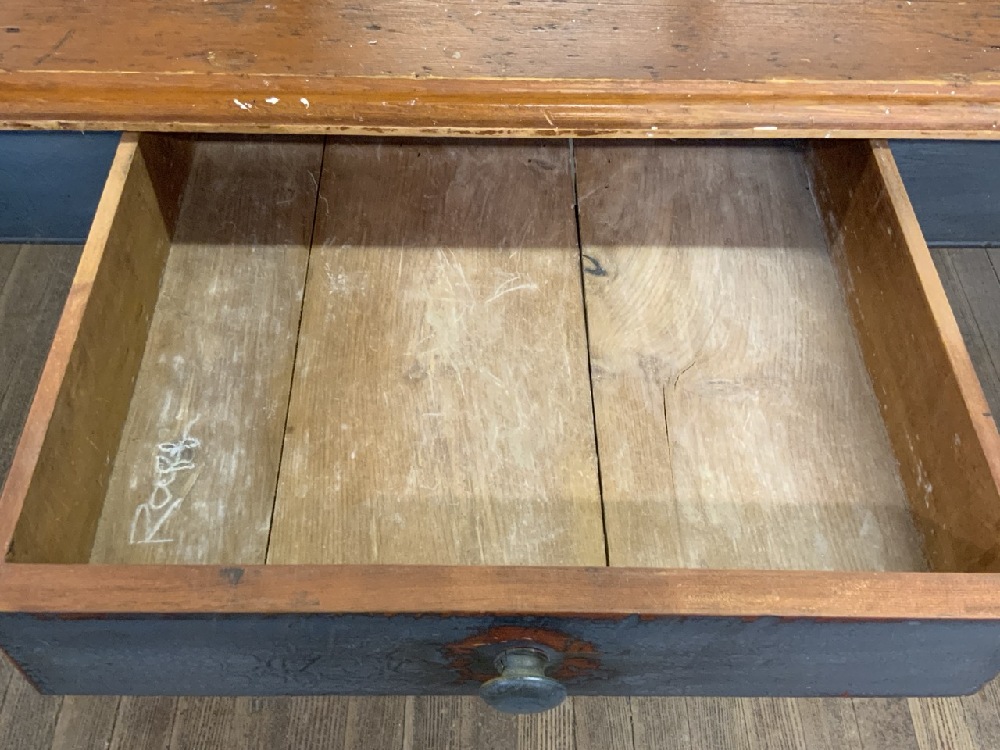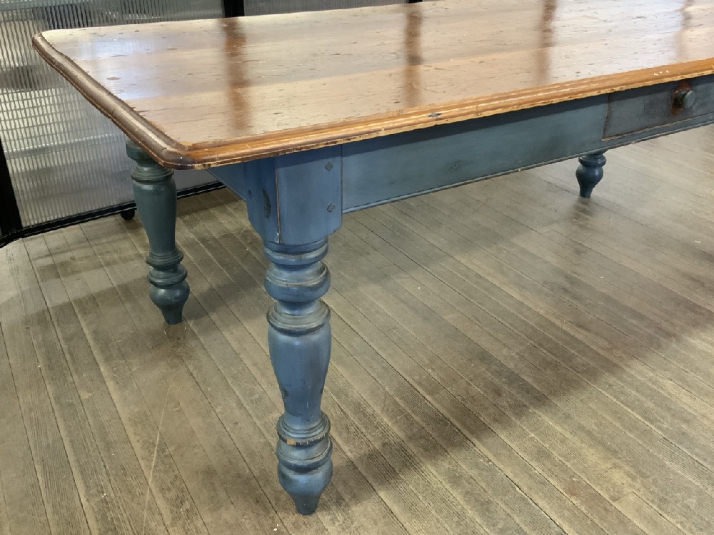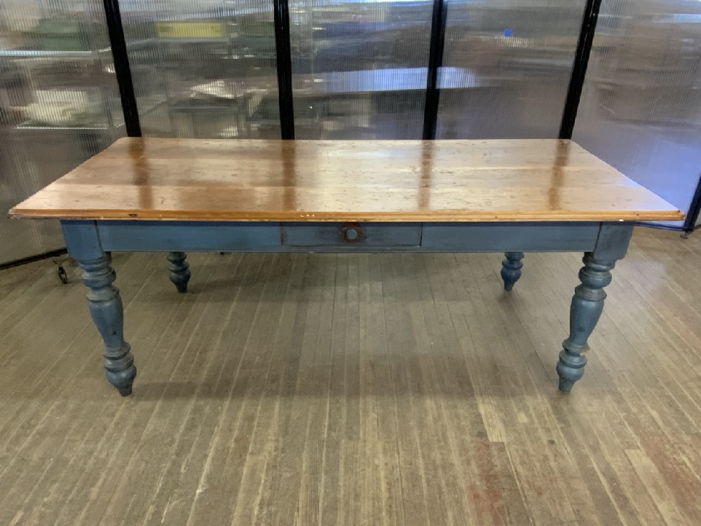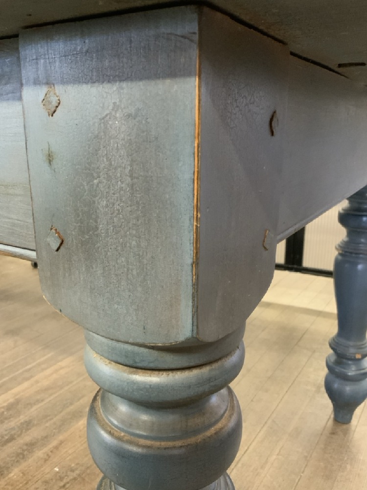 Antique Farm Table with two (2) drawers. Robins egg blue paint.
