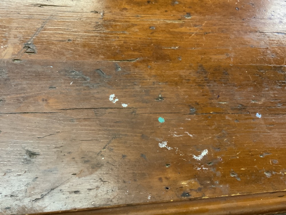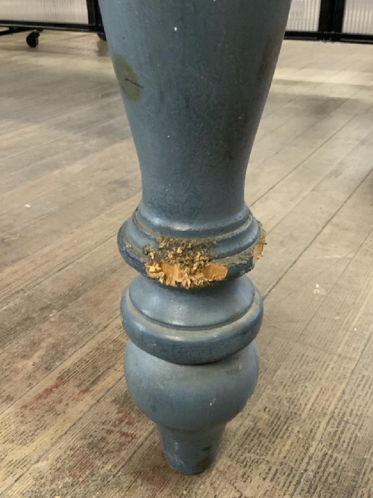 Slight paint stains on the top and the right front leg has signs of wear all as noted in the pictures.