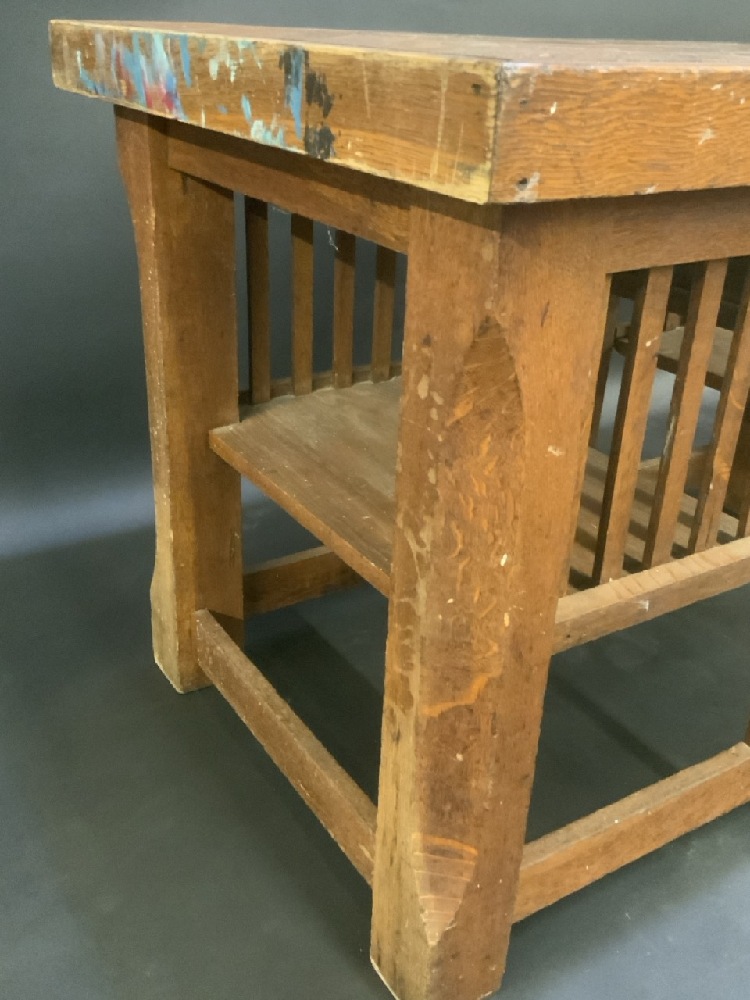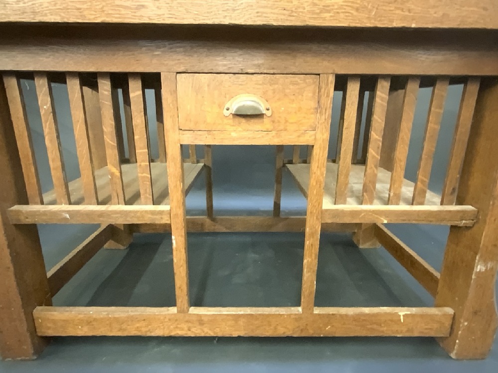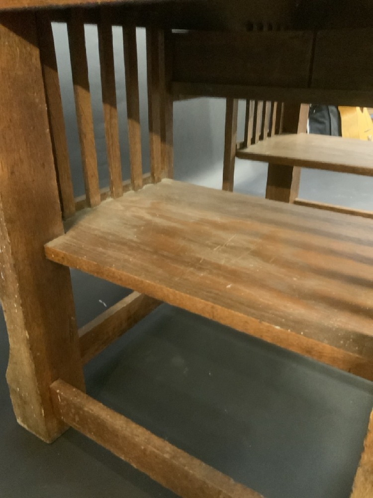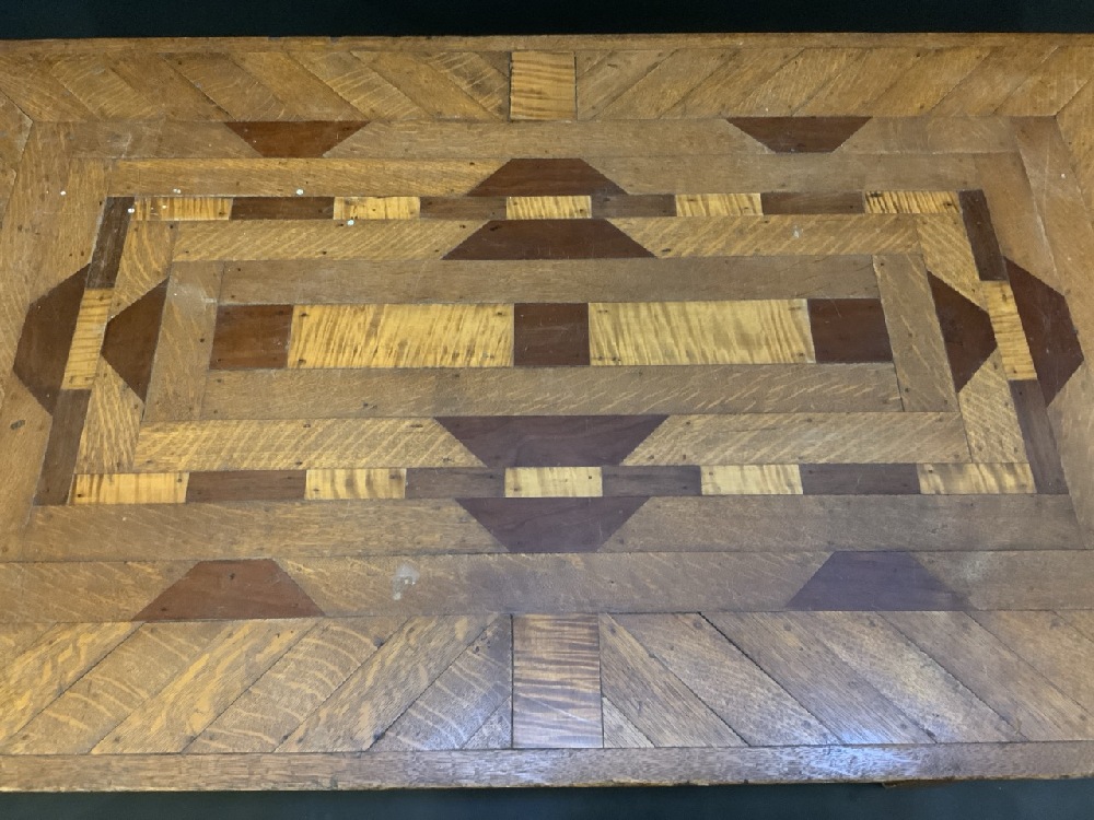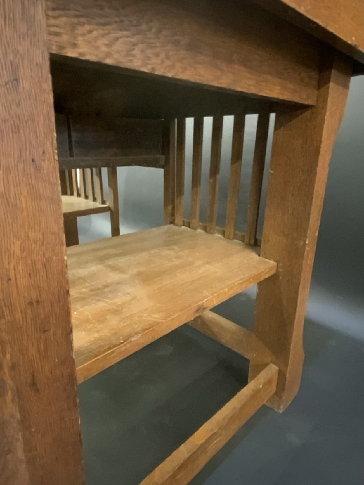 Arts & Crafts Period Partner's Desk with Side Bookcases. Incredible handwork marquetry top. Unsigned.