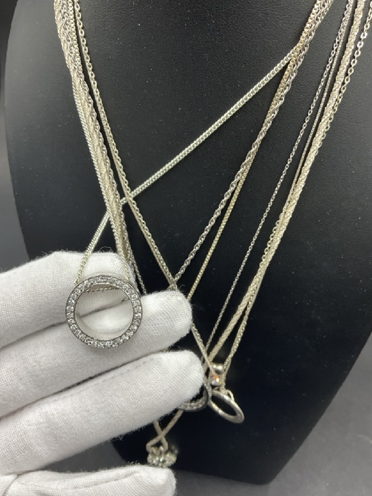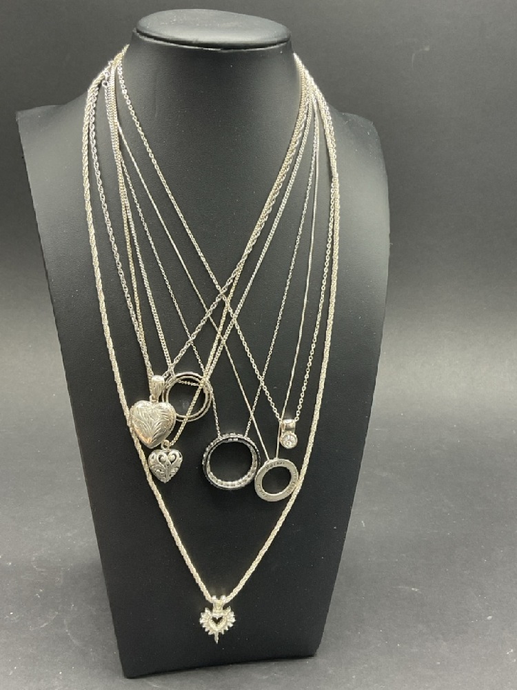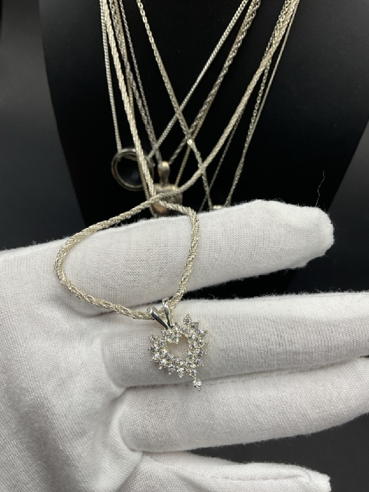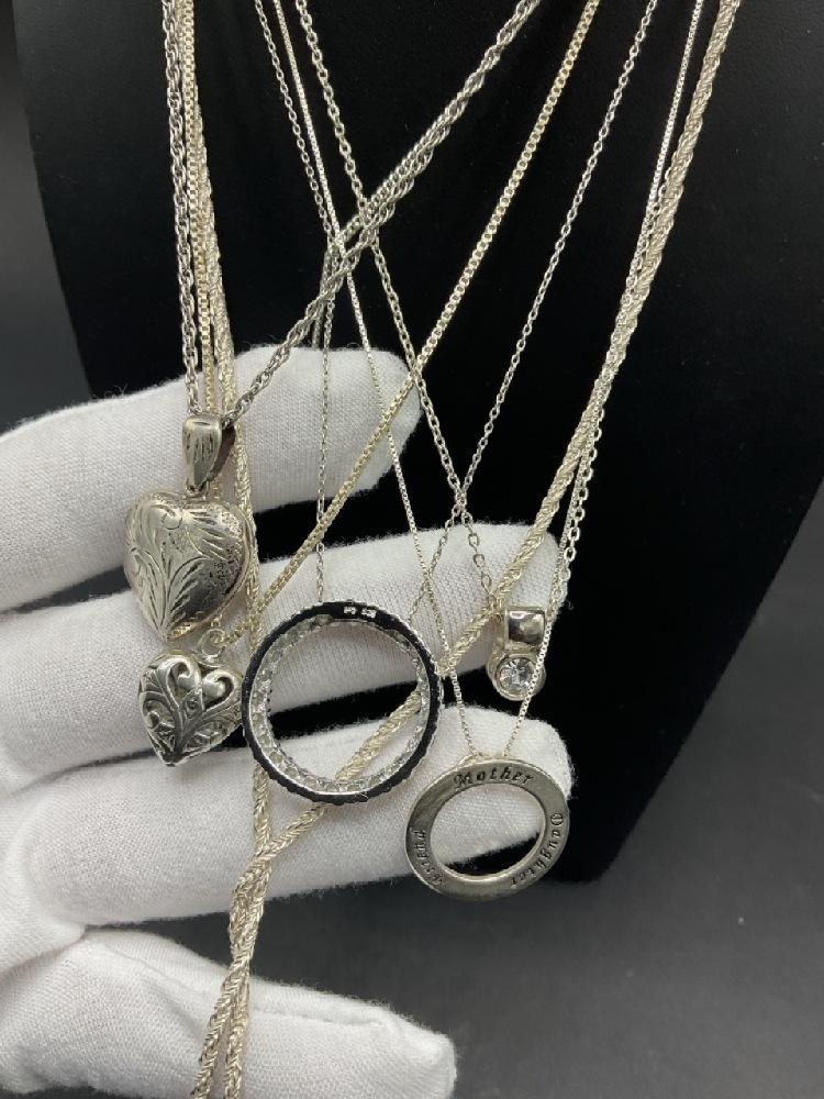 Seven (7) Sterling Silver Necklaces. Assorted sizes.