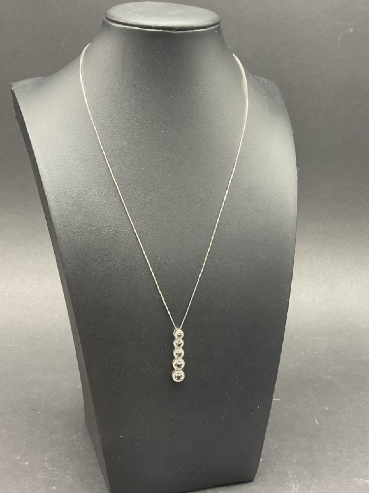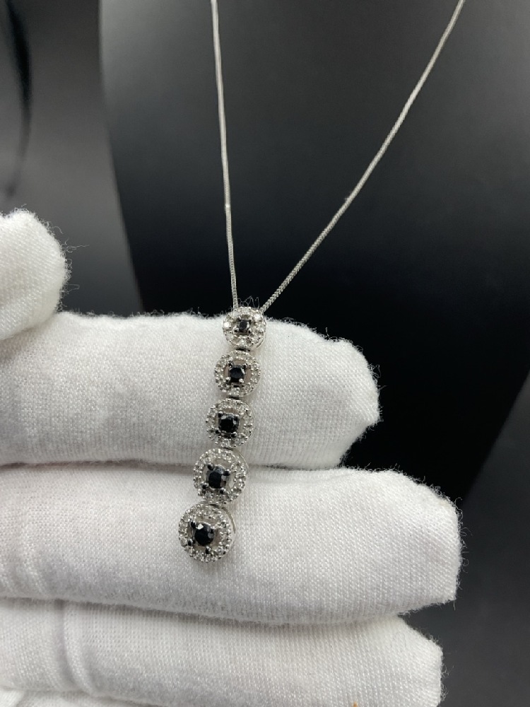 10K White Gold Diamond and Sapphire Pendant Necklace.