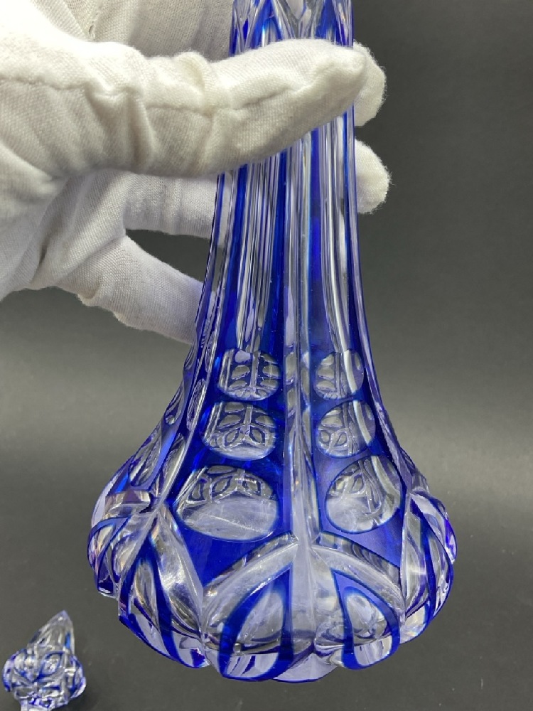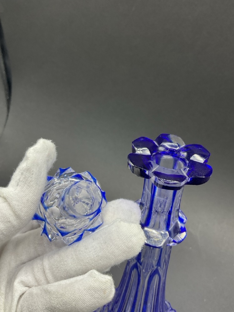 Antique Cobalt Blue Cut to Clear Perfume Bottle.