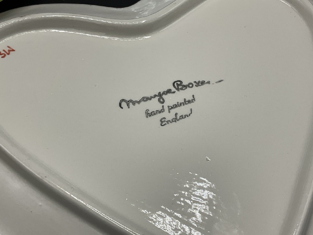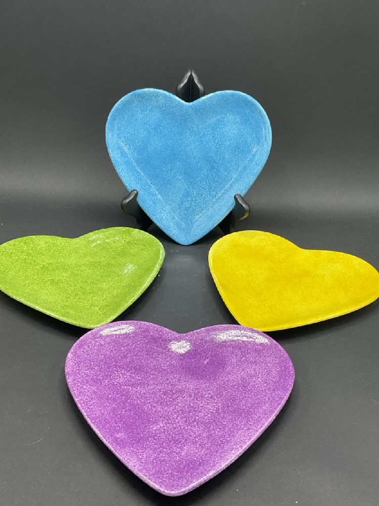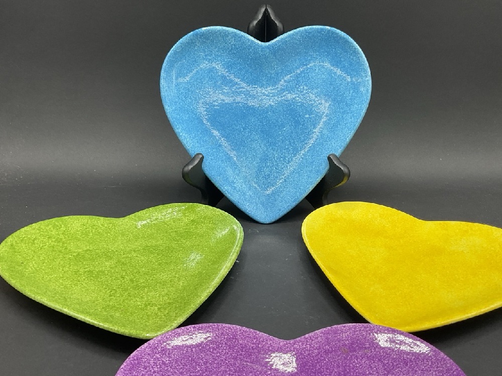 Maryse Boxer English Porcelain Heart Plates. Service for four (4). Excellent condition. Hand painted made in England.