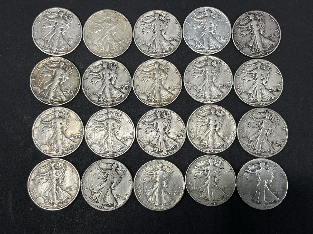 1 Roll (20) 90% Silver Walking Liberty Half Dollars