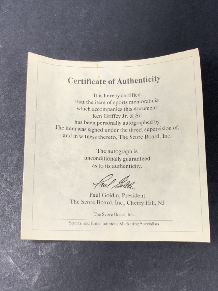 Authentic Griffey/Griffey JR. Autographed Baseball W/ Certificate Of Authenticity - Paul Goldin, The Score Board, Inc