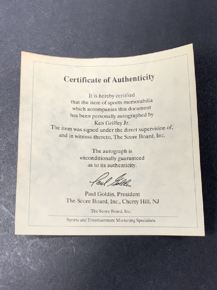 Authentic Ken Griffey JR. Autographed Baseball W/ Certificate Of Authenticity - Paul Goldin, The Score Board, Inc