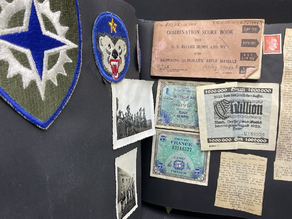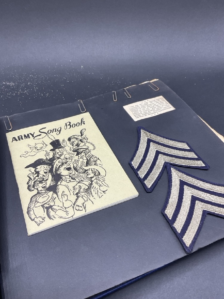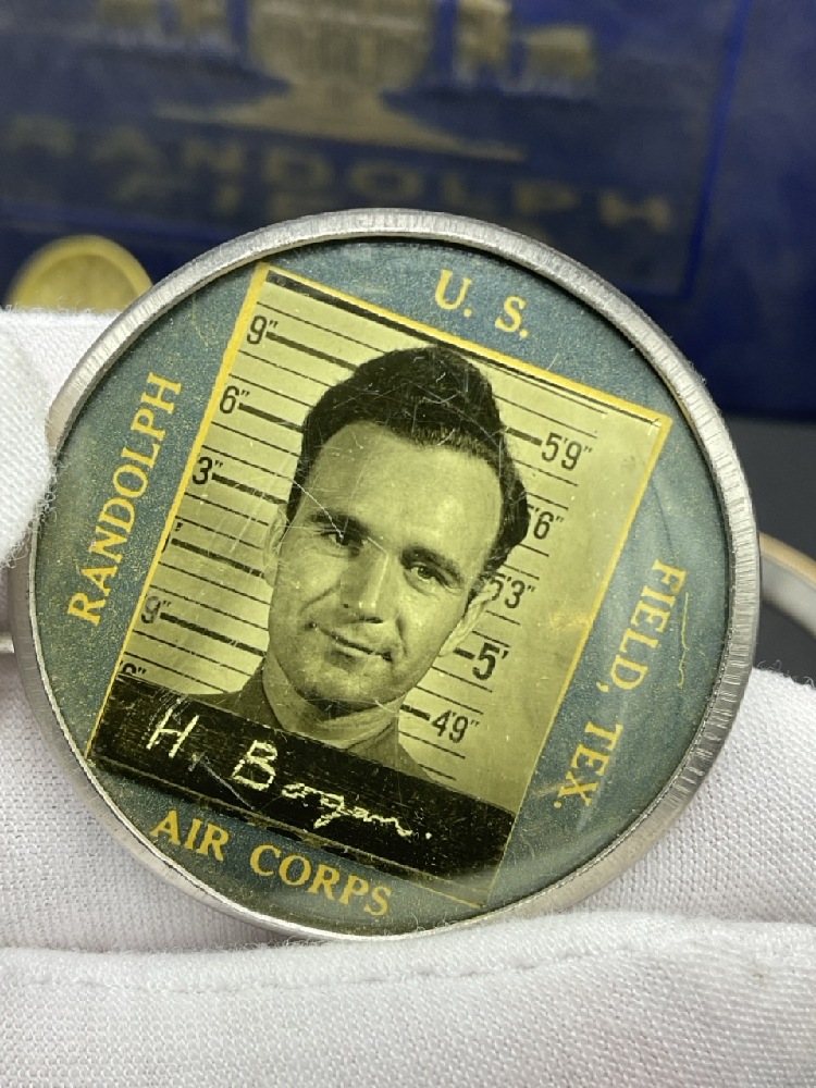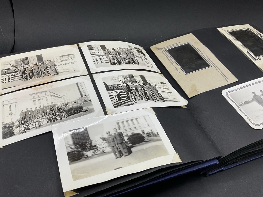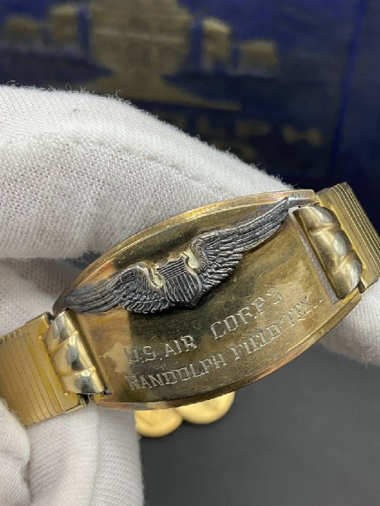 WWII Randolph Field Airforce Base Photo Album and Soldier's Items Includes sterling silver pins, wings, ID badge from base, ID bracelet (gold filled) and compasses. One compass glass broken. Please see photograph preview.