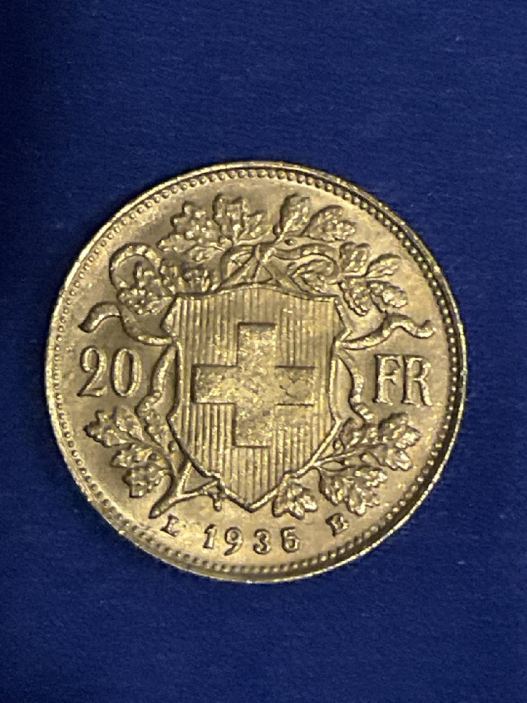 Switzerland 20 Francs Helvetia Gold Coin 1934.