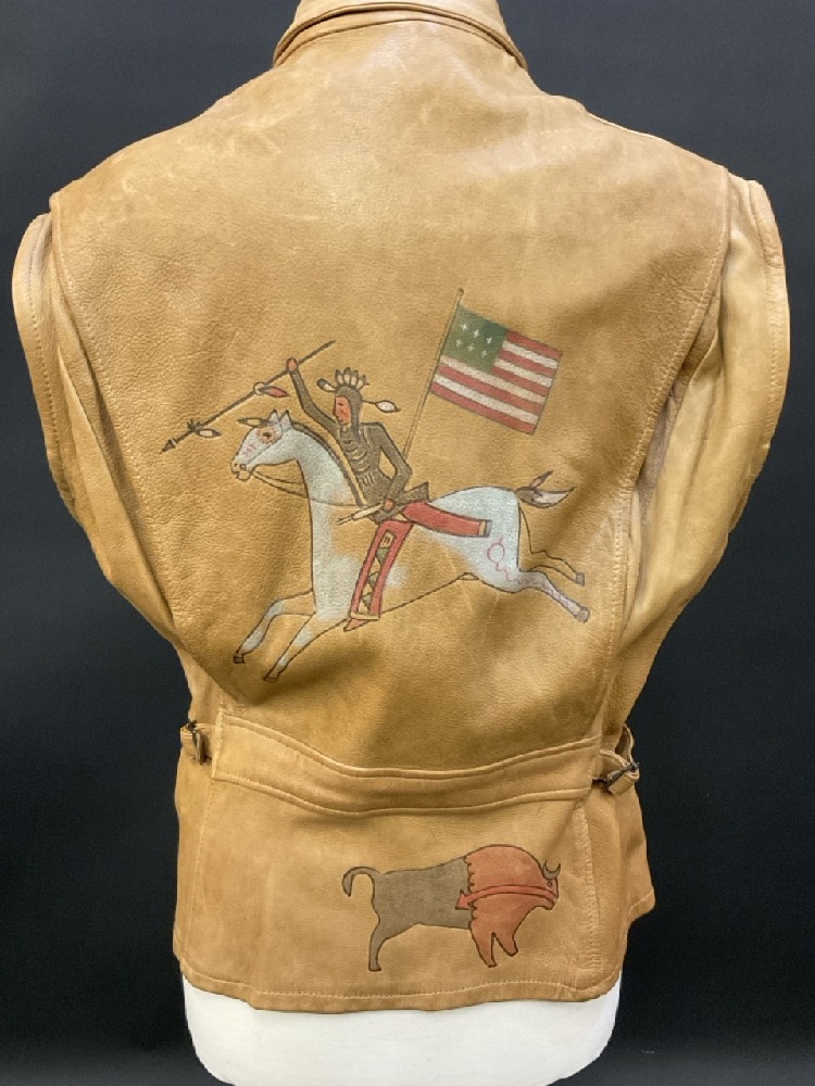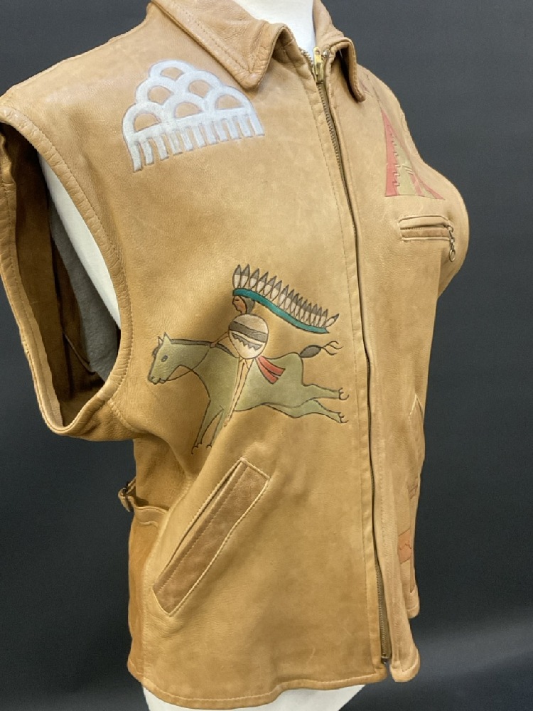 Rare Ralph Lauren Country American Indian Leather Vest. Vintage 1990's Ralph Lauren Green Label "Country" Line. Decorated with American Indian Motif. Lightly worn. Overall very good, please see photograph preview.