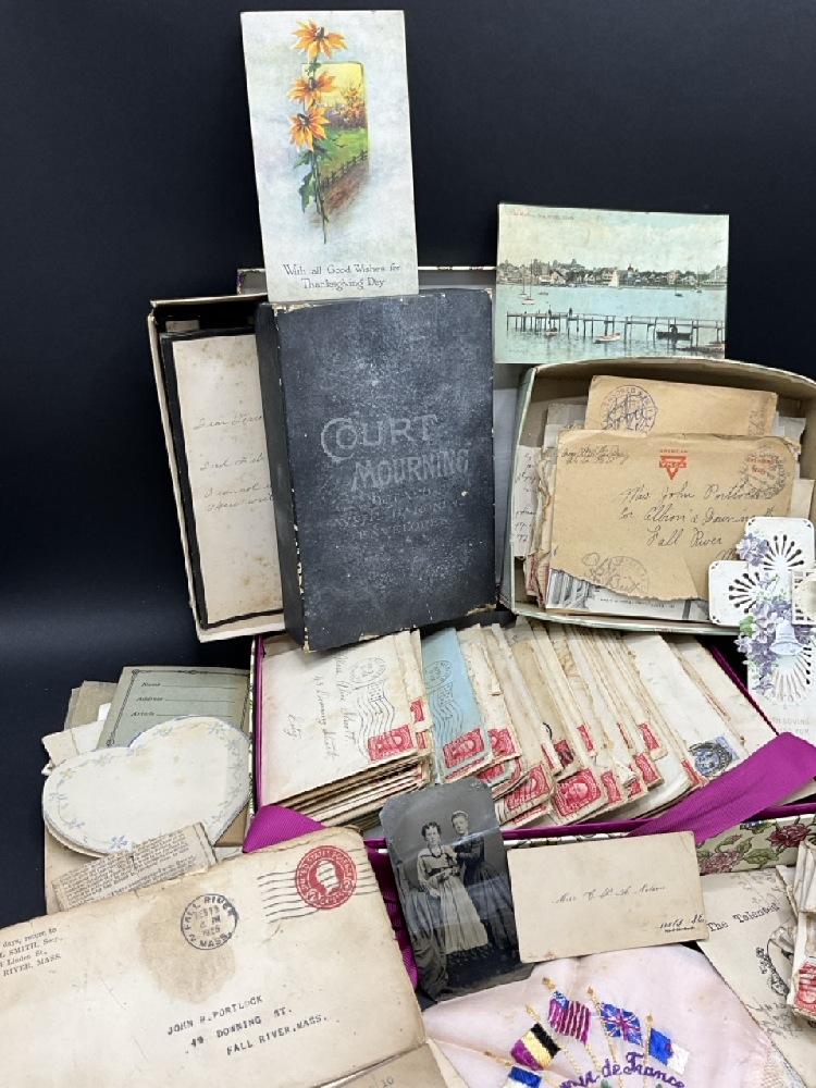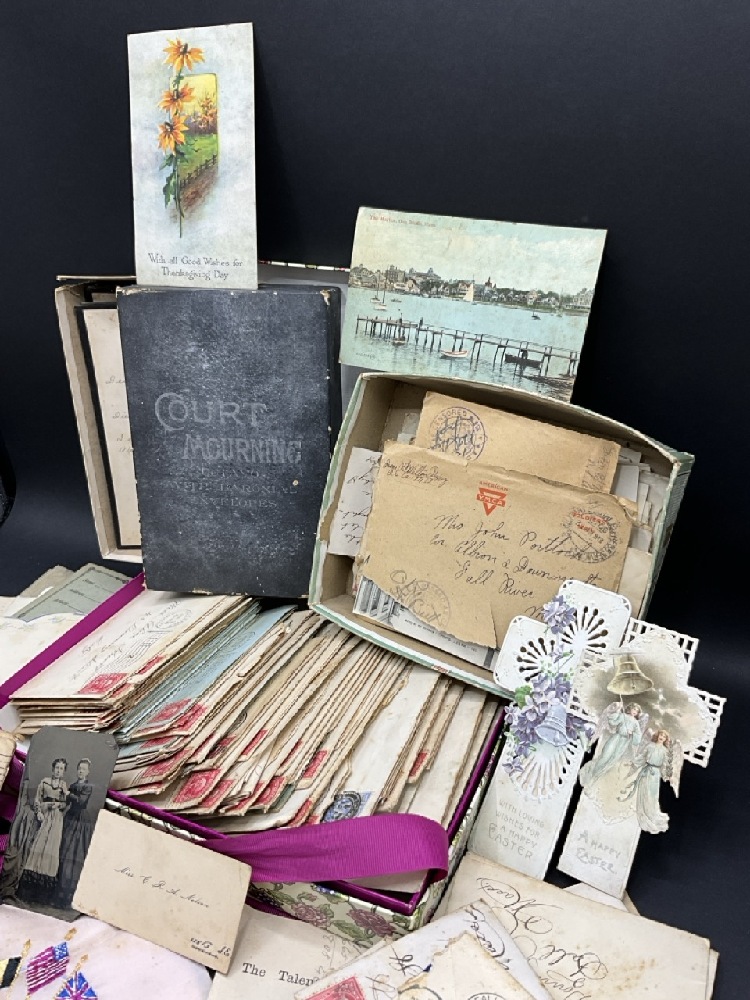 Ephemera Lot W/ Postcards, Letters & Holiday Greeting Cards. WWII Love letters. 1900-1940's Massachusetts.