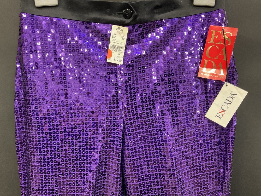 Vintage Escada Royal Purple Sequin Stirrup Pants. New with Tags.