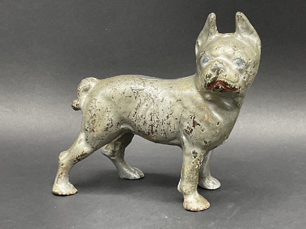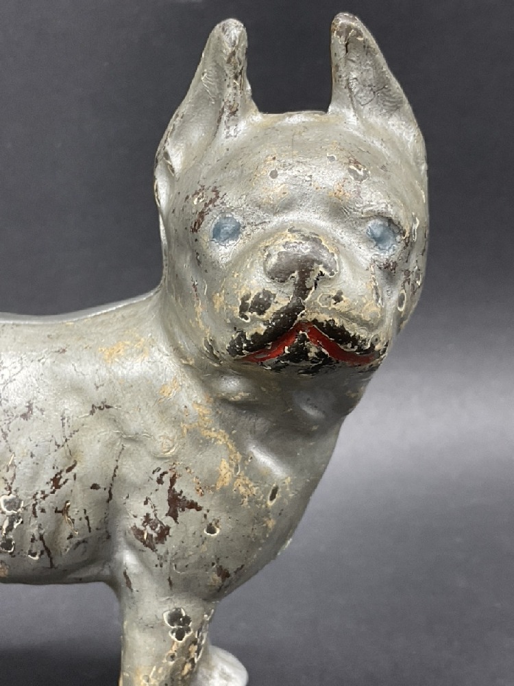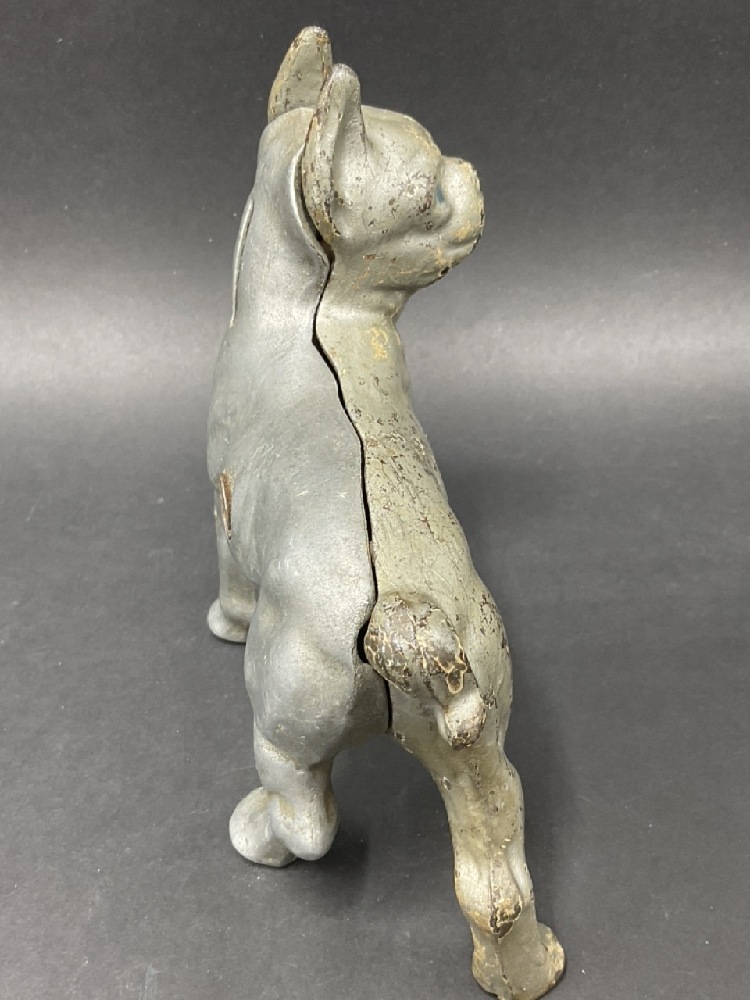 Antique Cast Iron Silver Boston Terrier Still Bank.