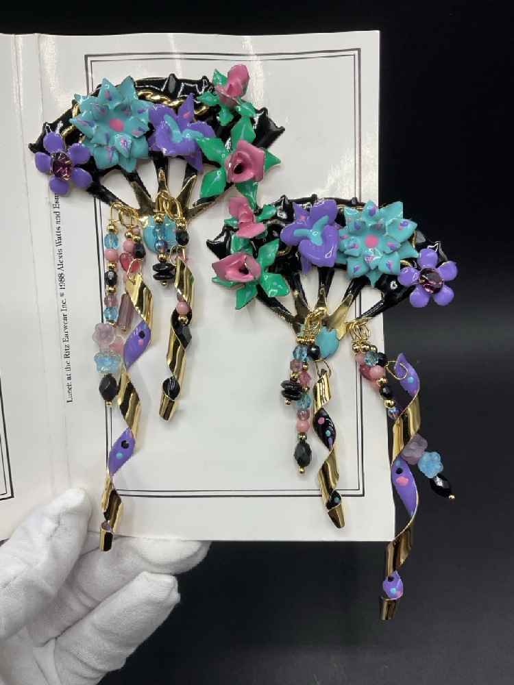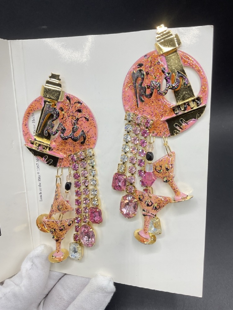 Three (3) Pairs 80's Lunch at The Ritz Dangle Costume Earrings.