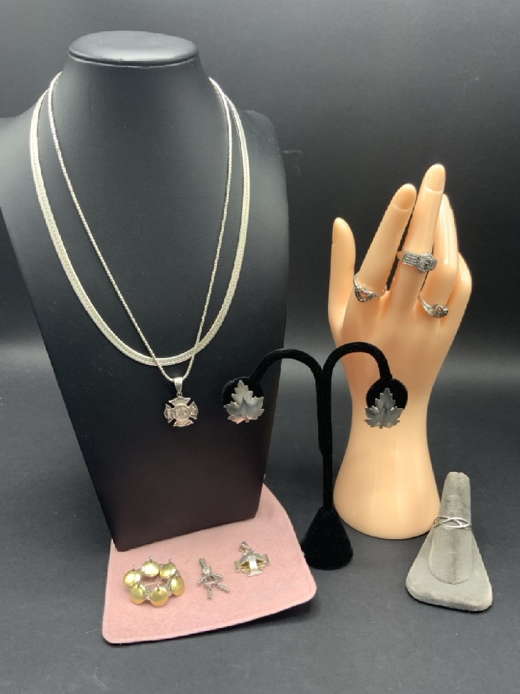 (4) rings, (2) necklaces, (1) brooch, (1) pendant & (1) pair of earrings