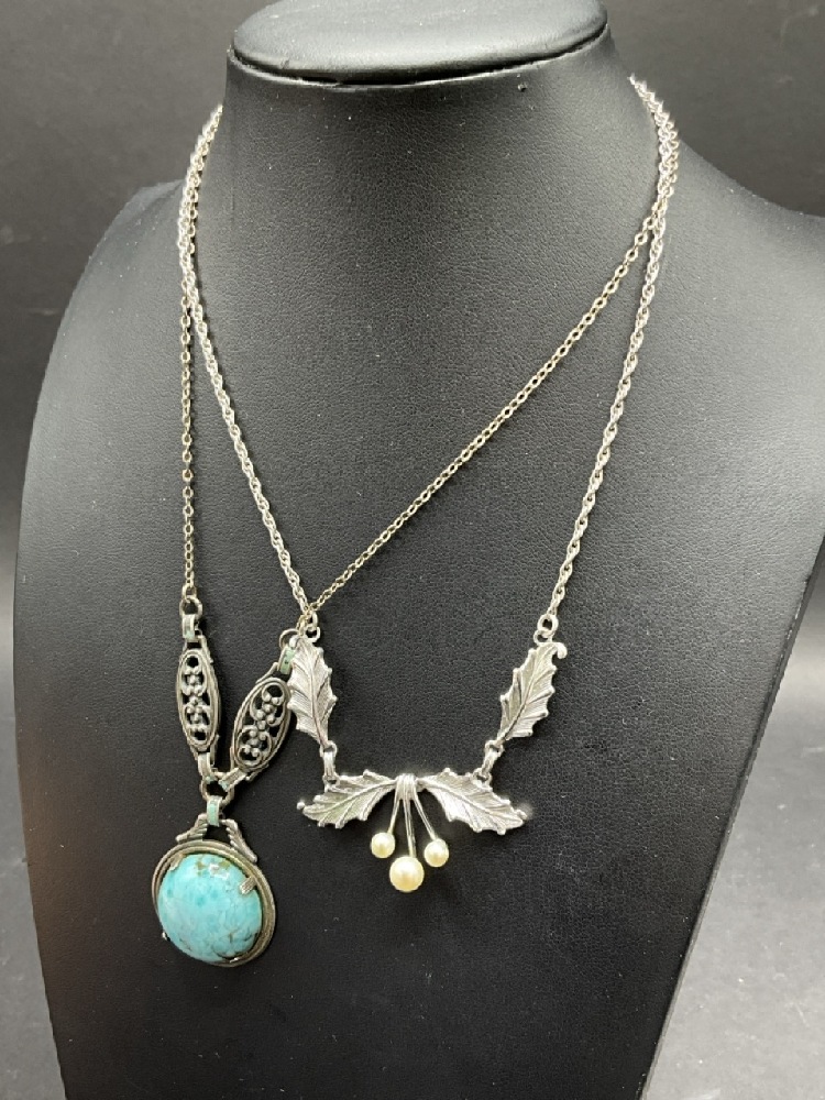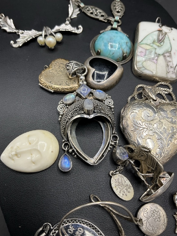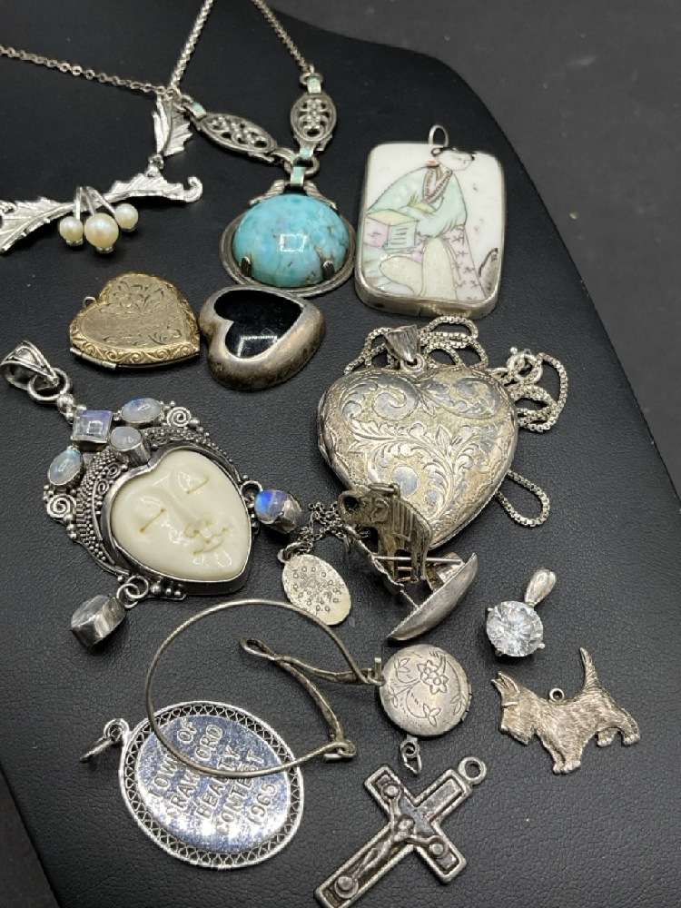 Compiled Vintage Sterling Jewelry Lot 80 grams . Nice old necklaces, pins, pendants, scrap etc.