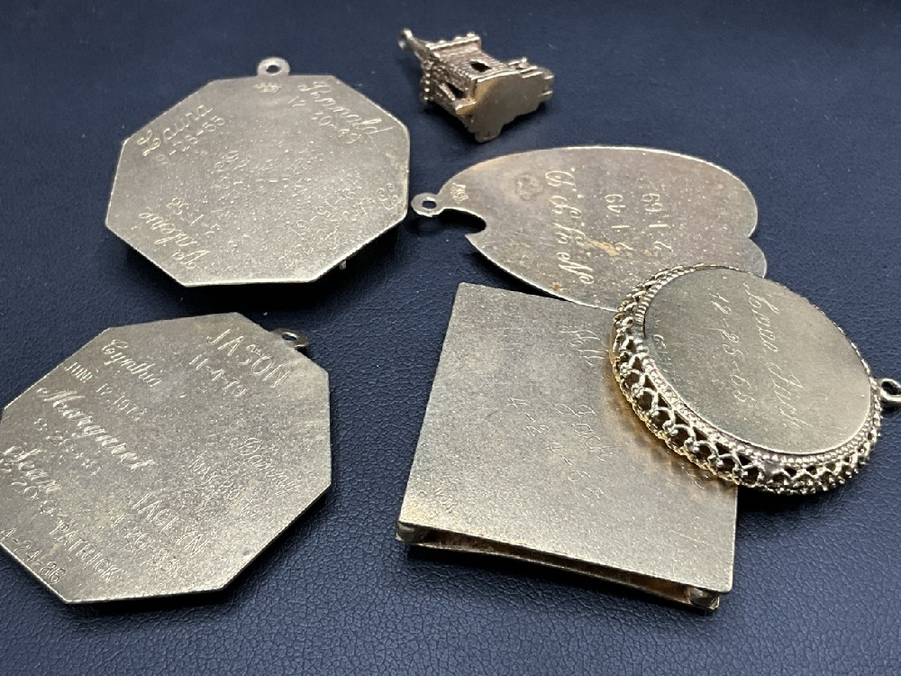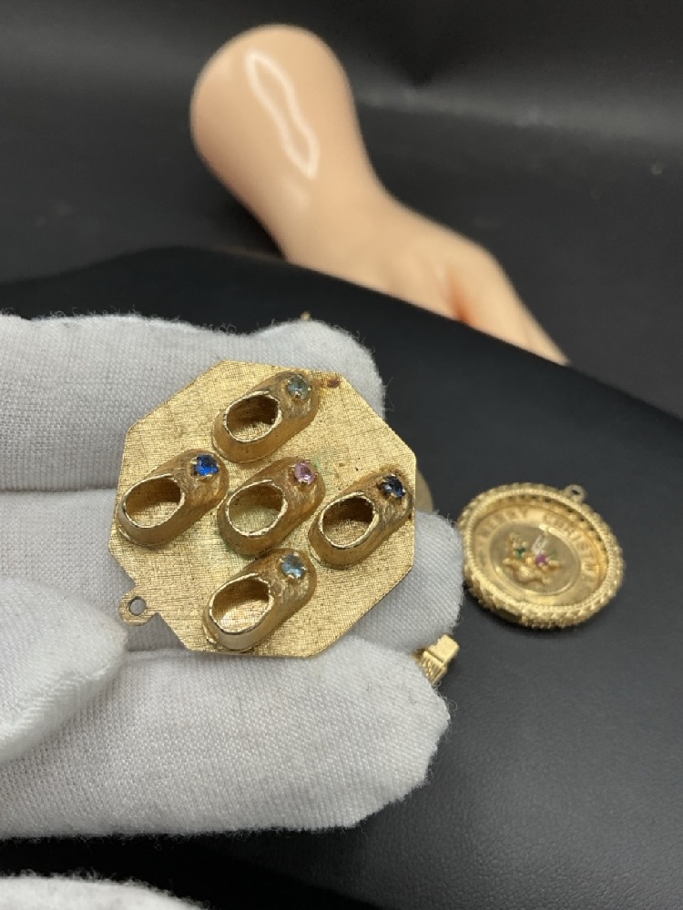 Six (6) 14K Yellow Gold Vintage Charms for Charm Bracelet. Merry Christmas, Badge, Baby etc.