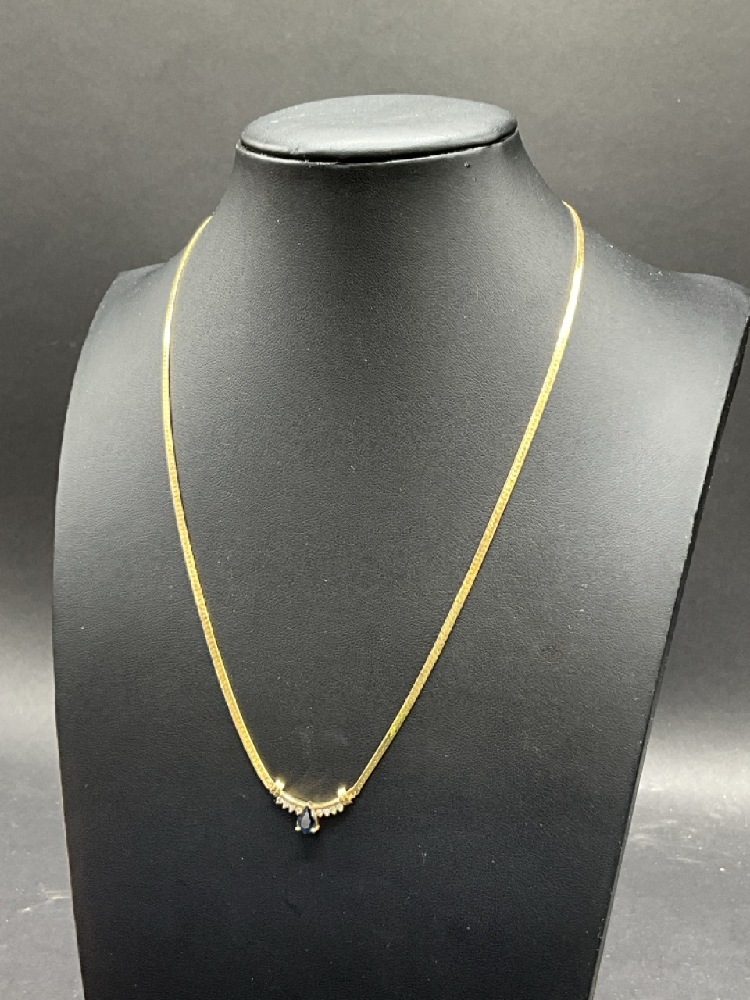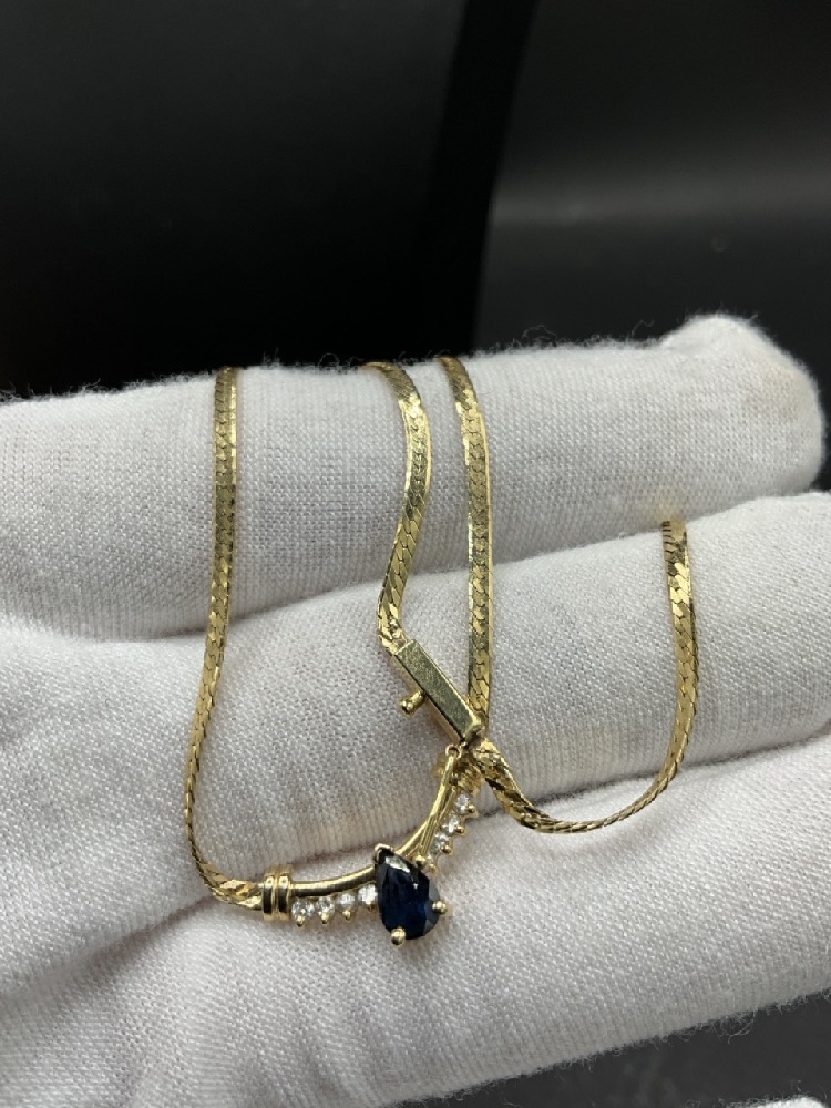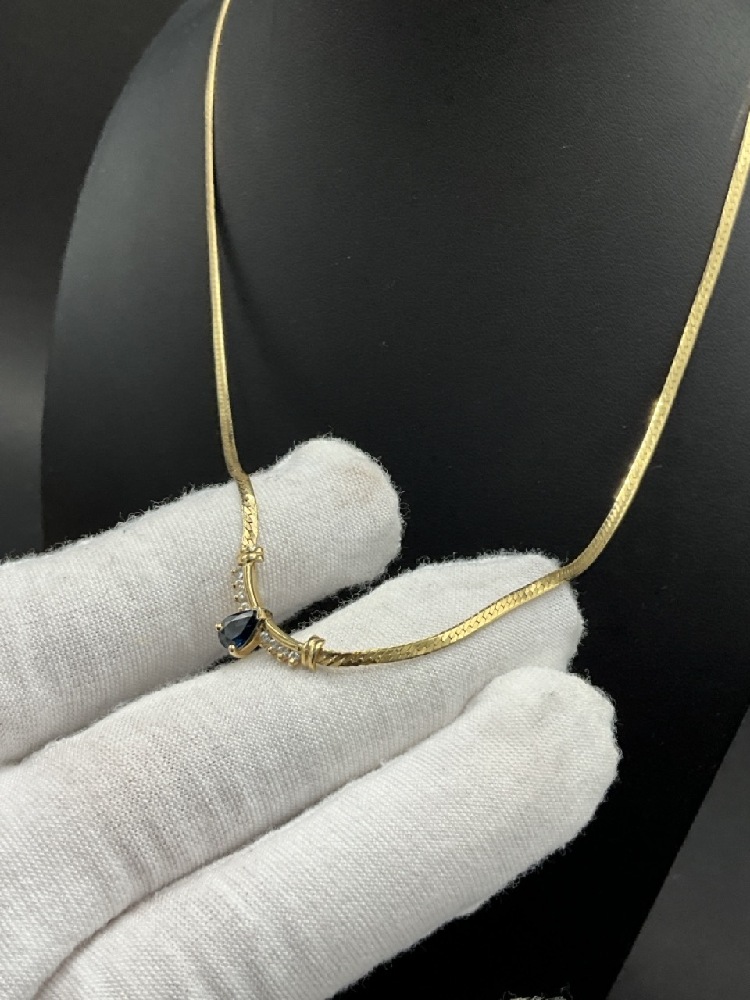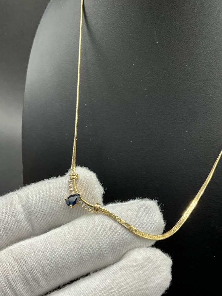 14K Yellow Gold Sapphire And Diamond Herringbone Necklace