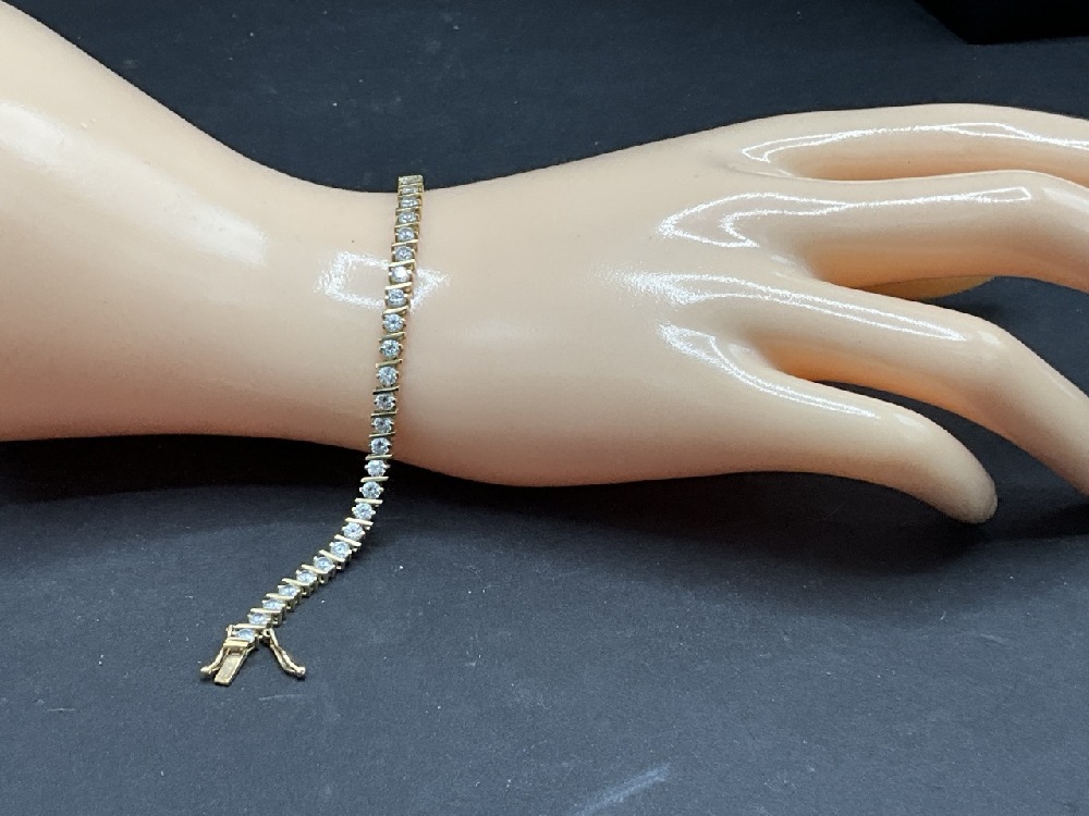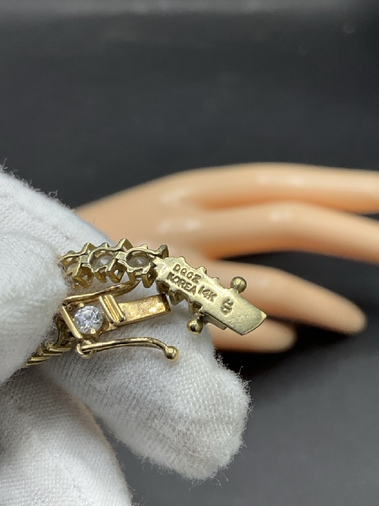 14K Yellow Gold CZ Diamond Tennis Bracelet.