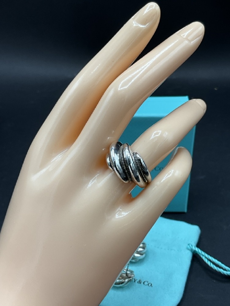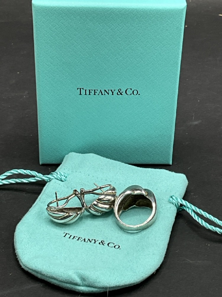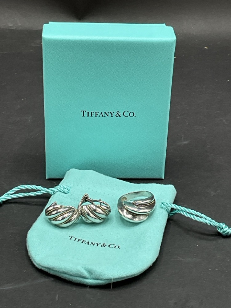 Tiffany & Co. Sterling Silver and 18K Ring and Matching Earrings.