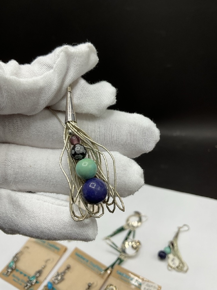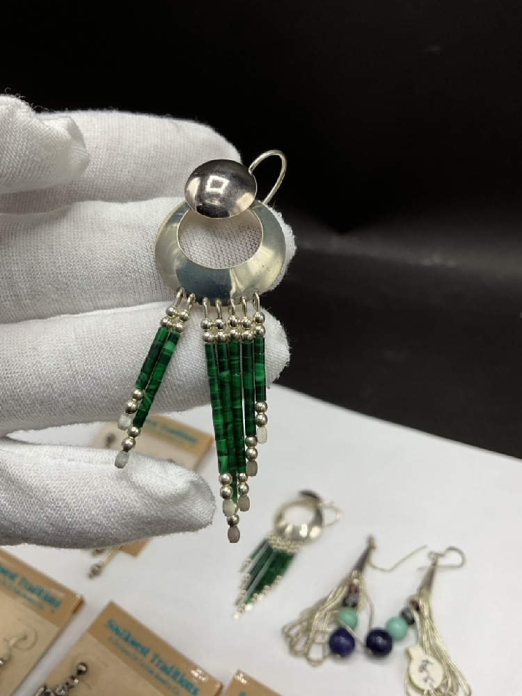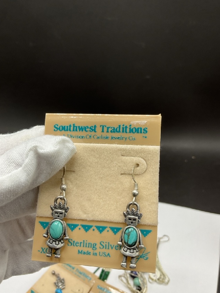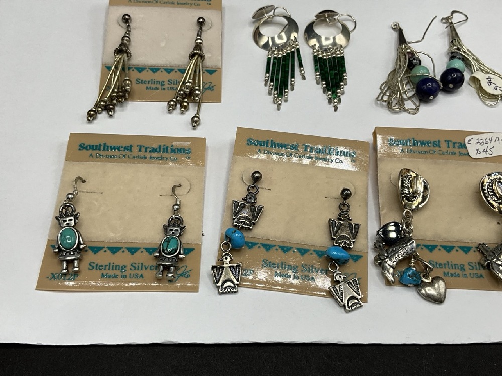 Six (6) Pairs of Vintage Southwestern Style Sterling Earrings. c. 1990's New Old Stock, made by Carlisle.