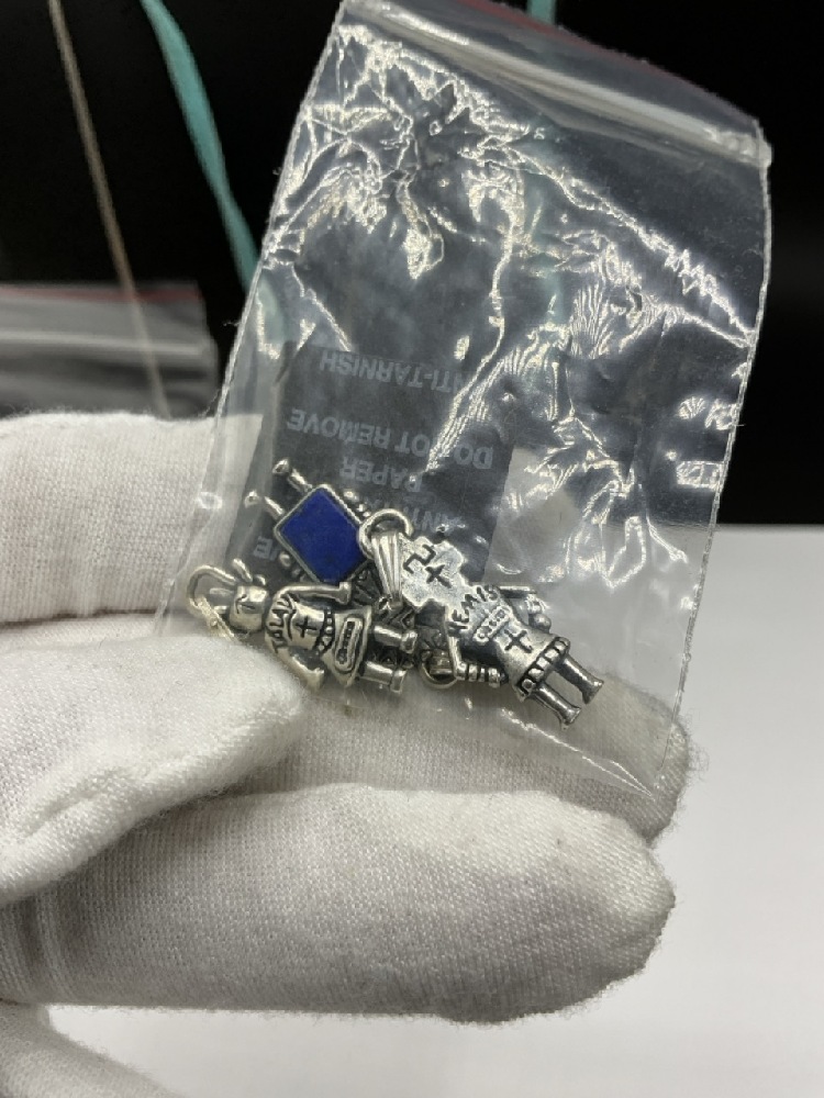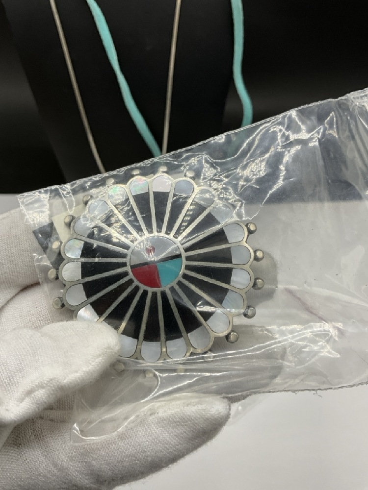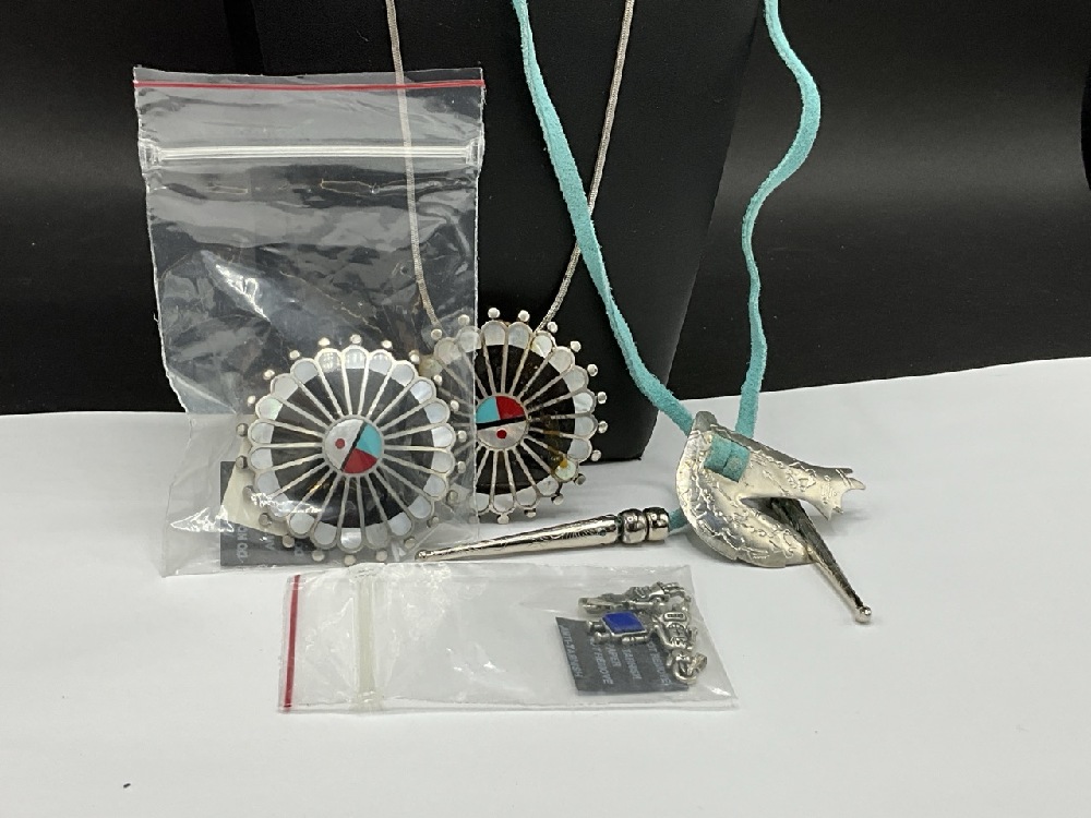 Compiled Sterling Silver Jewelry Group. American Indian style Pendants and Necklaces. As seen in photograph preview. c. 1990's Carlisle.