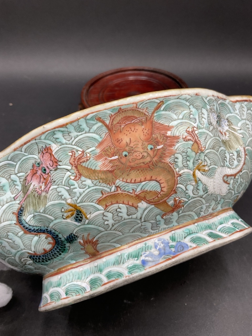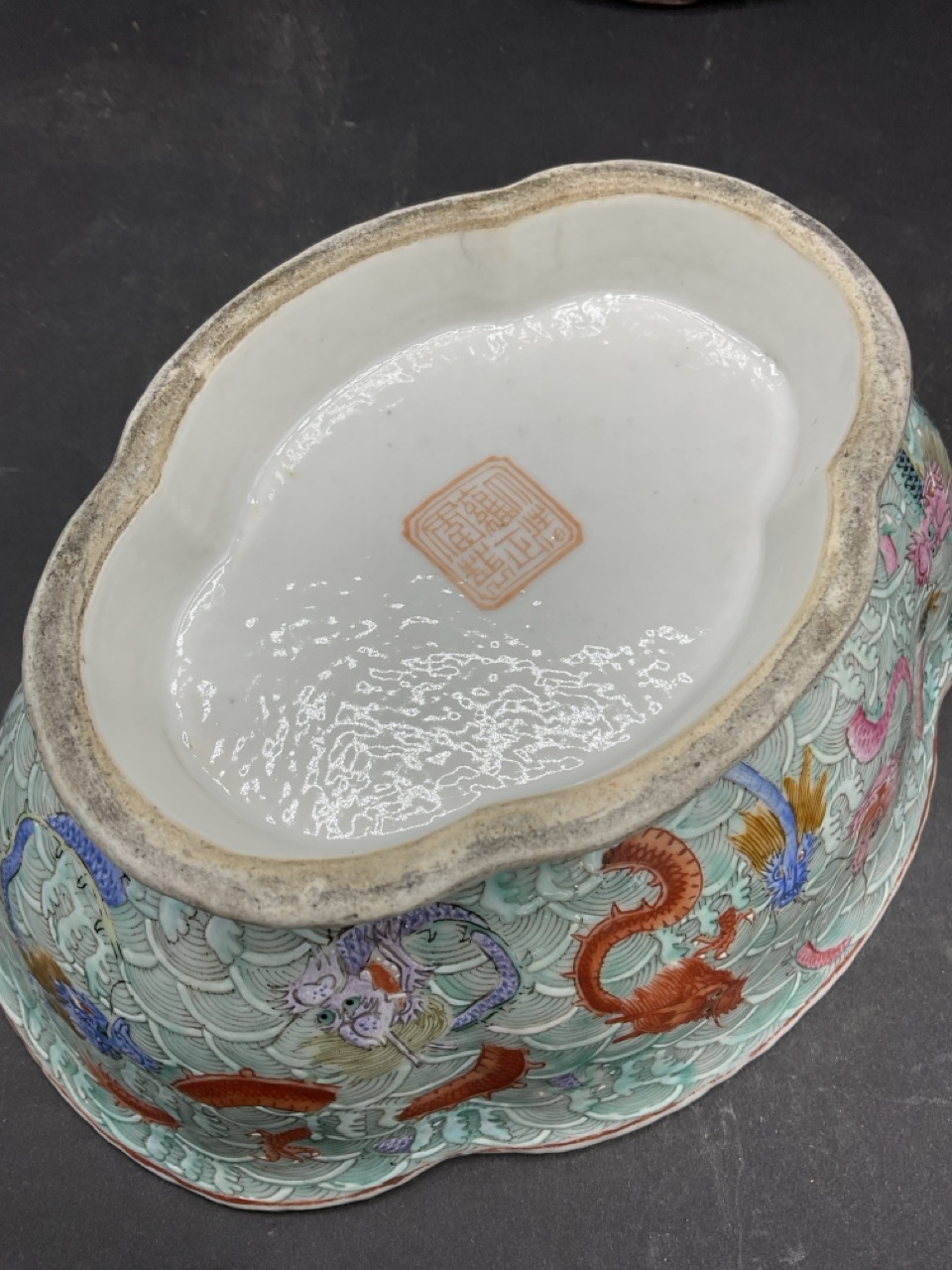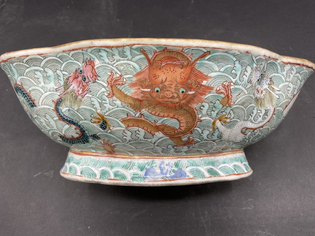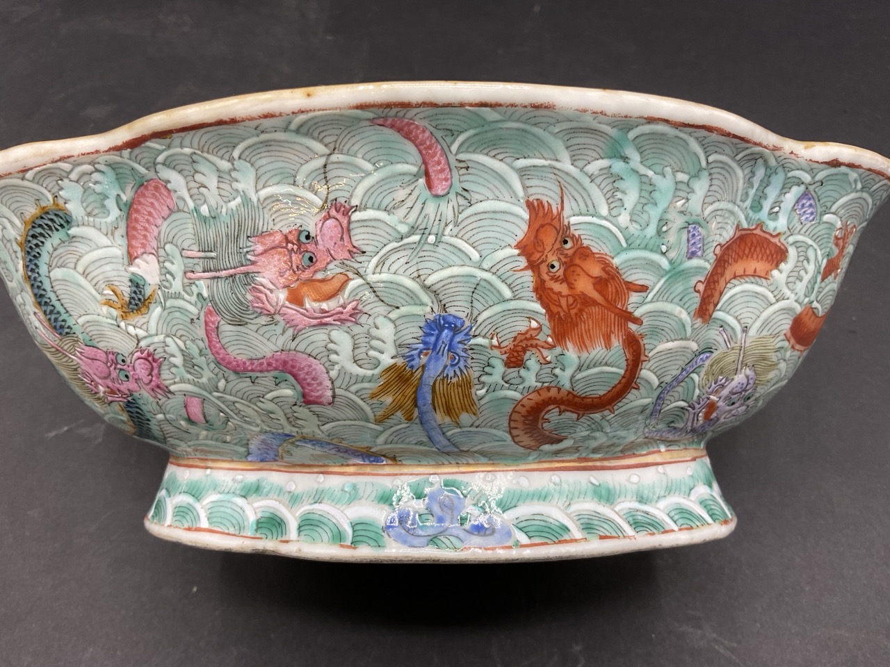 Antique Early Chinese Dragon Porcelain Bowl. Signed at base.